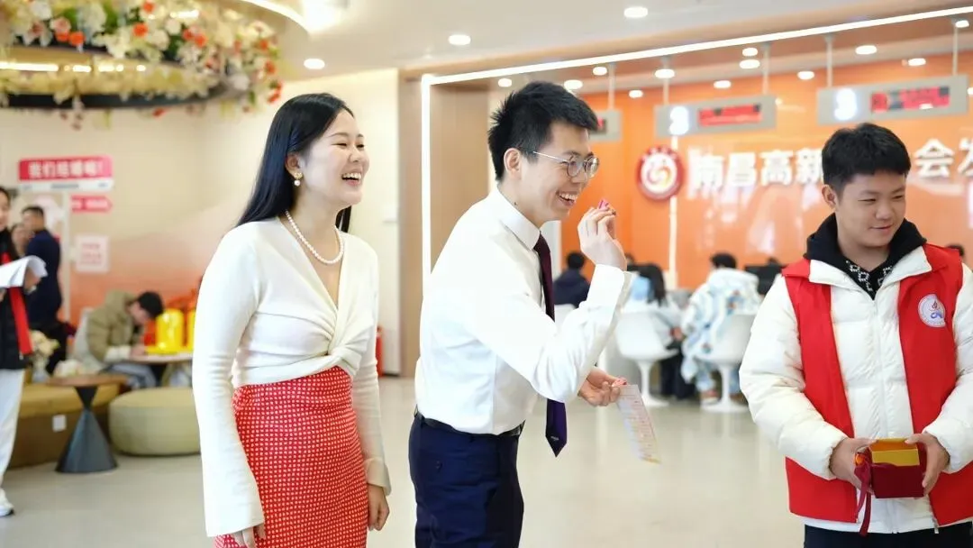 一场温馨的活动,不仅为新人们的婚姻画上圆满开端,更传递着高新区的人文关怀。作为全市开发区首个婚姻登记处,南昌高新区婚姻登记处自2025年10月底开业以来,累计已办理结婚登记493对,此次活动现场就有60余对新人成功组成新家庭。一张张结婚证的背后,是一个个幸福家庭的诞生,更是南昌高新区打造宜居宜业幸福家园的生动写照。