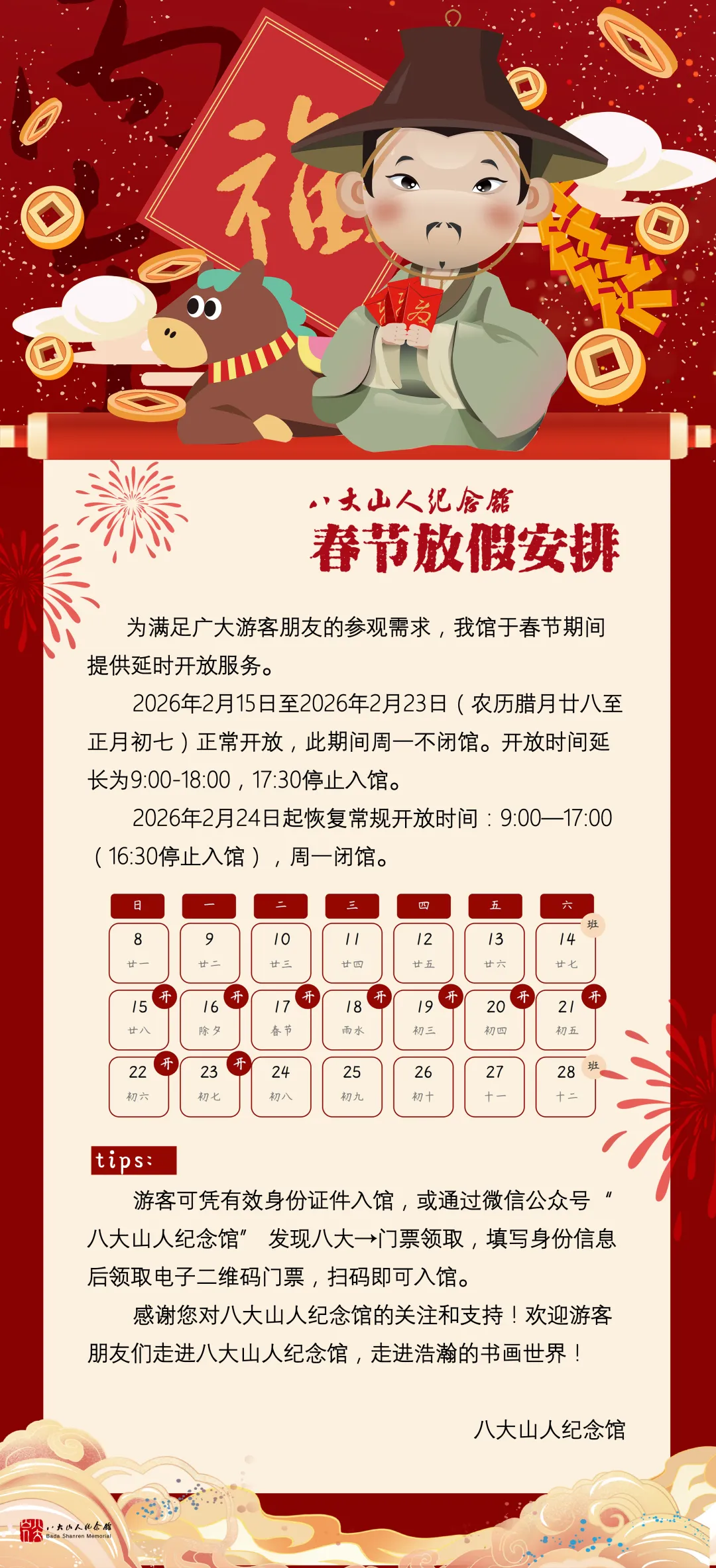 八大山人梅湖景区是集自然景观与人文风光于一体的综合性景区,当八大山人的笔墨风骨遇上马年新春的喜庆氛围,一场兼具传统雅韵与动手乐趣的文化盛宴,即将在八大山人纪念馆温情启幕。2026年2月17日至23日,金箔画马新年日历、砑花笺拓印特色公教、咖啡渣沙画创作、古建实景木艺课堂、特色研学等多场特色公教活动轮番登场,从非遗手工到实景研学,从书画创作到古建探秘,邀您与家人共赴一场沉浸式文化之约,在墨香与年味中,解锁新春别样打开方式。