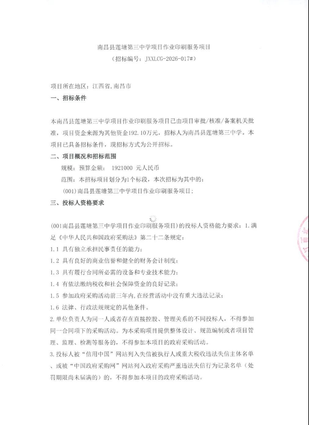 https://ctbpsp.com/#/bulletinDetail?uuid=ee9abeea-b816-4c18-b41b-fa01a37a5738&inpvalue=%E5%8D%97%E6%98%8C%E5%8E%BF%E8%8E%B2%E5%A1%98%E7%AC%AC%E4%B8%89%E4%B8%AD%E5%AD%A6%E9%A1%B9%E7%9B%AE%E4%BD%9C%E4%B8%9A%E5%8D%B0%E5%88%B7%E6%9C%8D%E5%8A%A1%E9%A1%B9%E7%9B%AE&dataSource=0&tenderAgency=