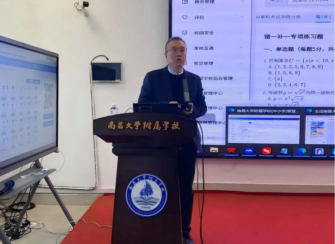 系列培训聚焦教育数字化转型核心需求,内容兼具前瞻性与实操性。胡川页围绕 AI 教育融合实践路径,系统解读 AI 在课堂互动设计、作业学情诊断等教学关键环节的应用场景,通过案例演示、步骤拆解等方式分享实用工具,并详细解读学校 IS 平台升级功能,助力教师全面掌握技术应用技巧,构建起 “理论 + 实操 + 平台” 的三维培训体系。