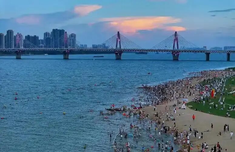 赣江边的风景不输主城,找个江滩坐着,等晚霞慢慢压下来,灯一开,天上一条带,江上一条带,人心里一条带。