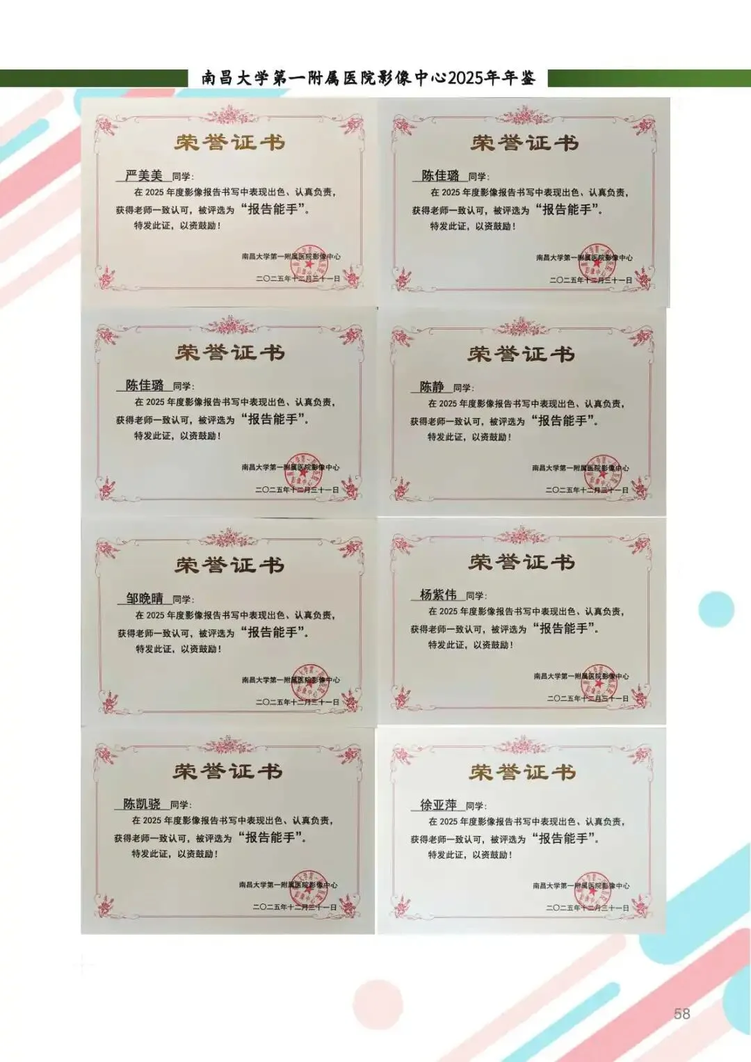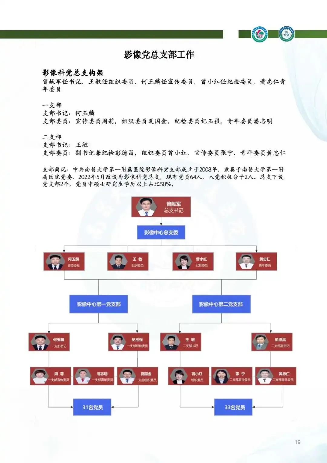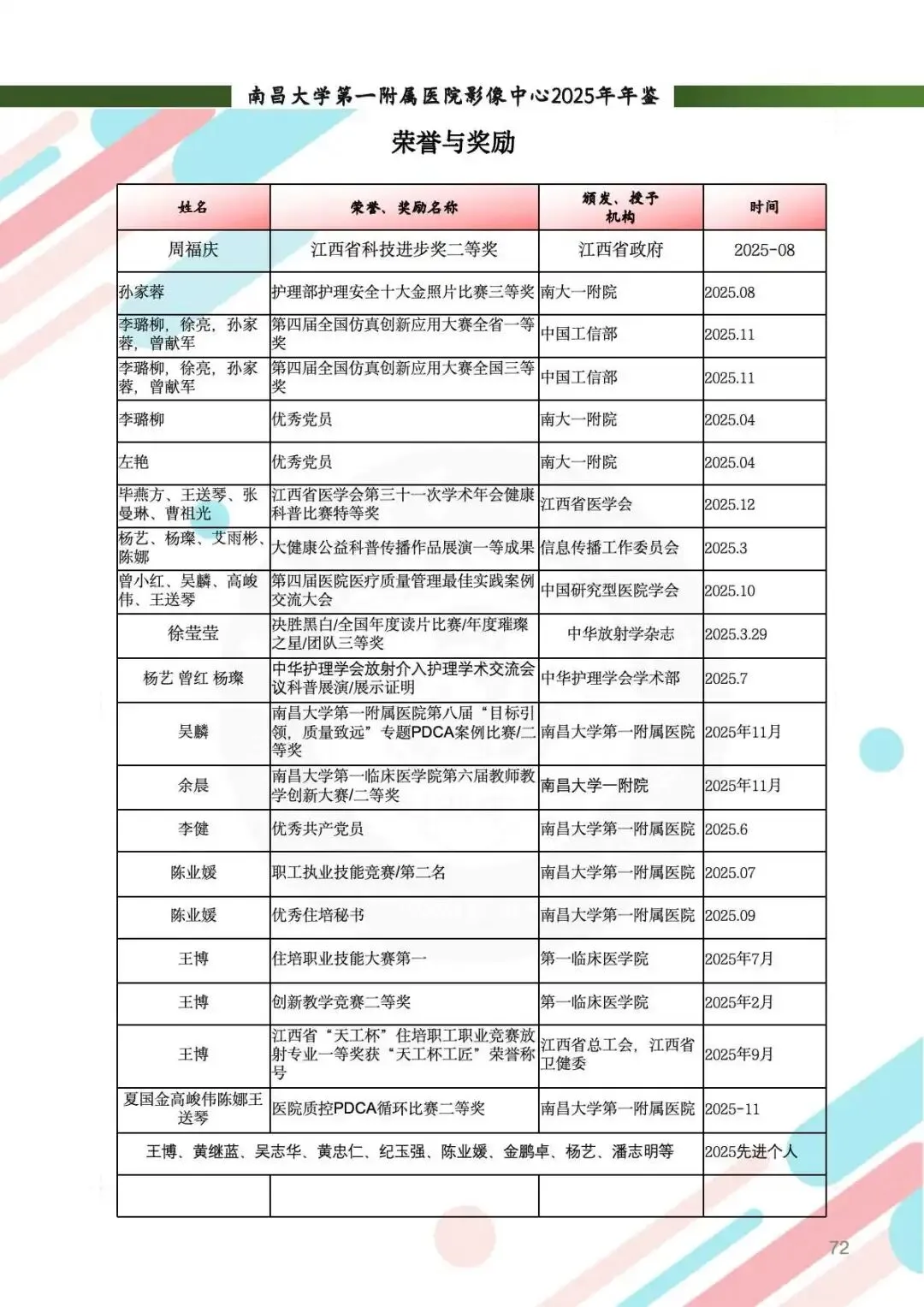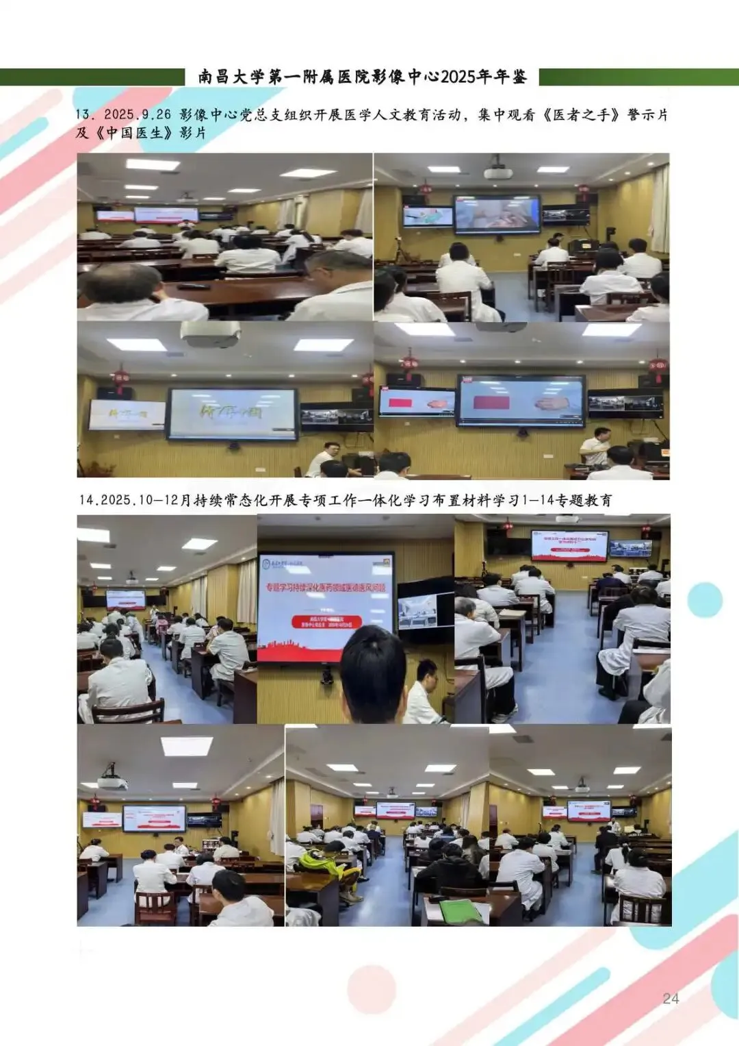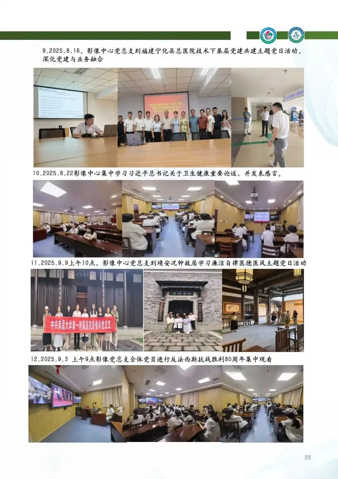 2025年,影像中心党总支以党的二十届四中全会精神为指引,深化党建与业务的融合,筑牢思想根基。通过线上线下常态化学习、警示教育、红色足迹追寻等方式,强化党员政治素养。持续开展“红色驿站,光影护航”等品牌活动,党组织凝聚力显著提升。全年的党建工作获全国医院质量管理一等奖,获评江西省教育系统模范职工小家称号,展现了党建引领下的高质量发展。