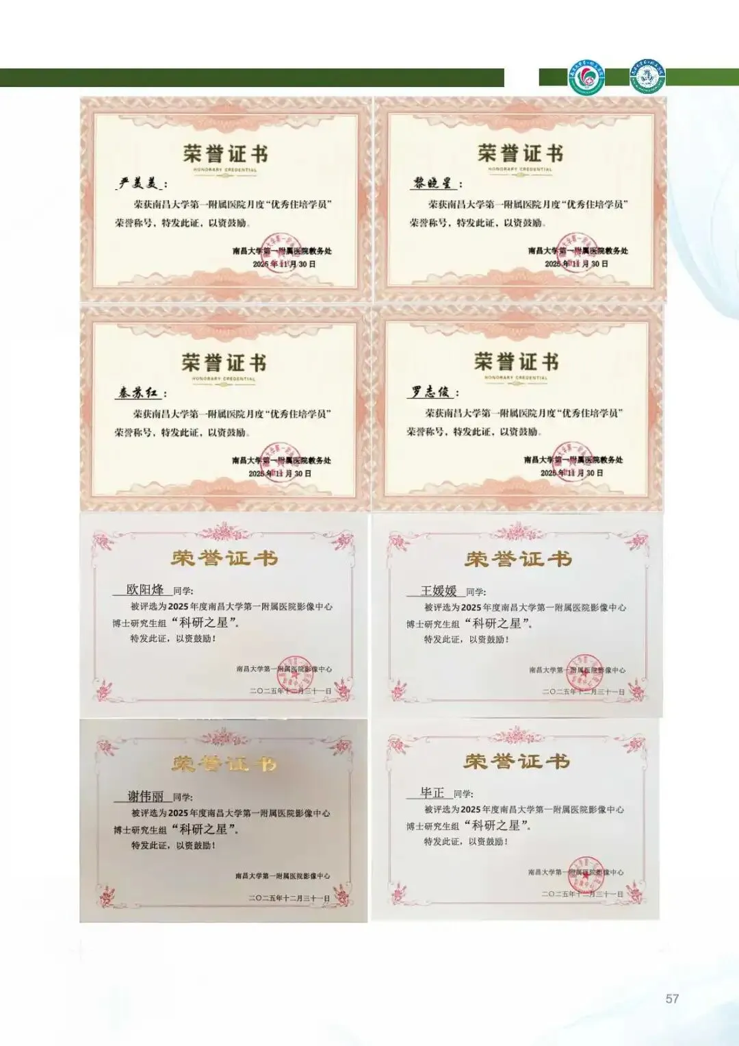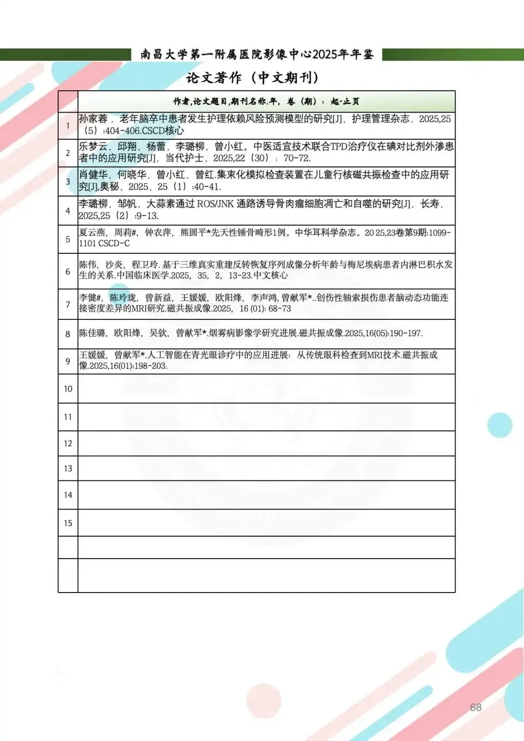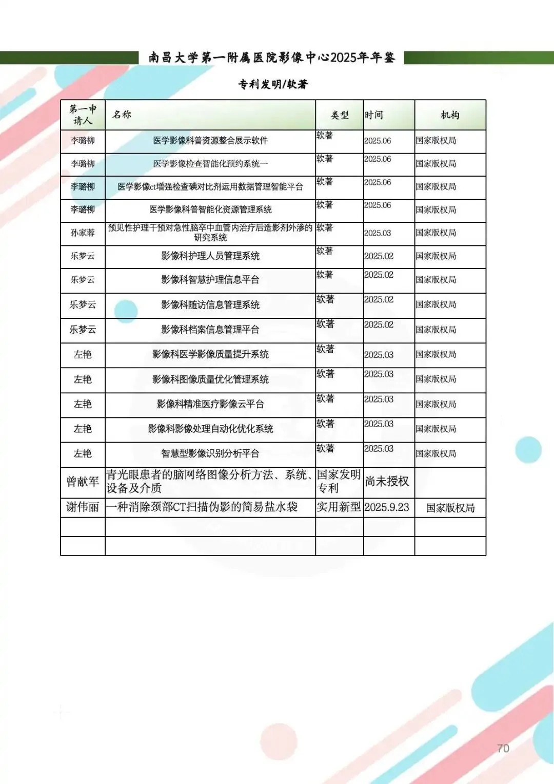 科研产出:新增多项课题,SCI论文发表30余篇,影响因子突破12.4,获批实用新型专利1项、软件著作权14项。PET中心首现18F-FDG、18F-PSMA双分子探针联合诊断方案,创新神经与肿瘤影像研究。科研团队连续受邀参与全国学术会议,成果惠及区域医疗发展。