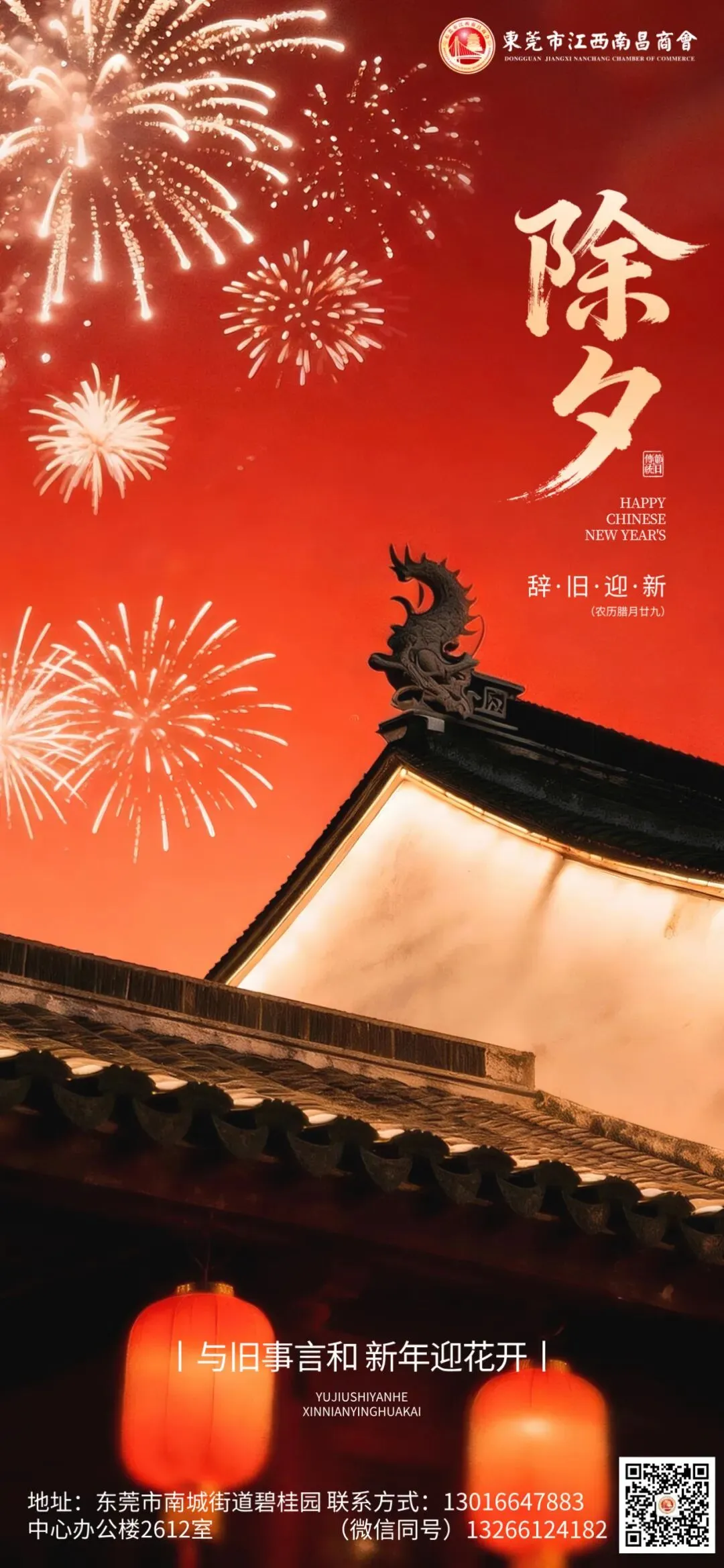 除夕守岁,福满庭堂,辞旧迎新启新章。值此除夕团圆之时,东莞市江西南昌商会会长程争卿携全体会员,恭祝大家马年吉祥,阖家美满,岁岁平安,万事顺意!