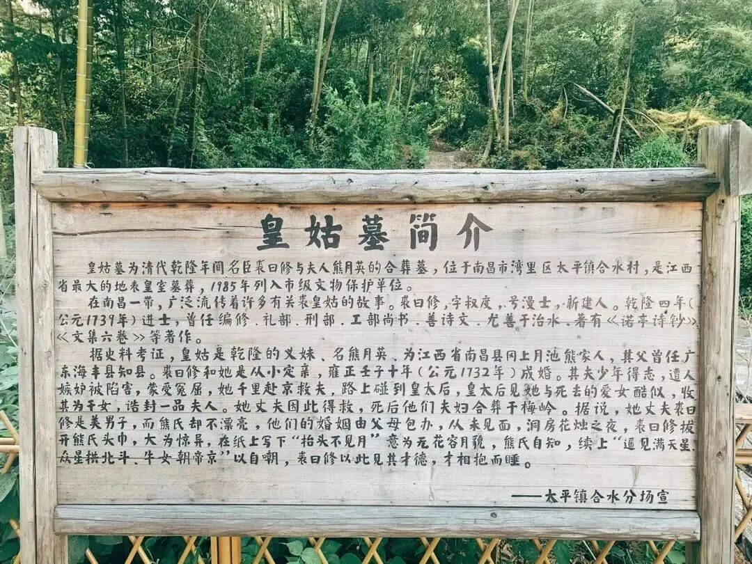 ▲裘曰修与夫人熊月英的合葬墓——皇姑墓,位于南昌市湾里区太平镇合水村,是江西省最大的地表皇室墓葬,1985年列入市级文物保护单位。