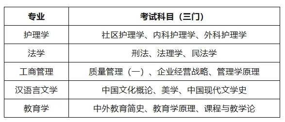 自学考试本科专业学位加试科目对照表: