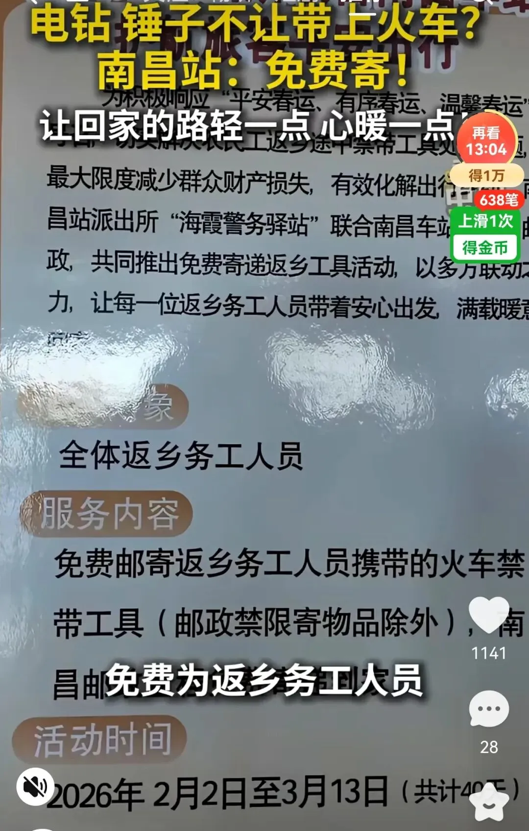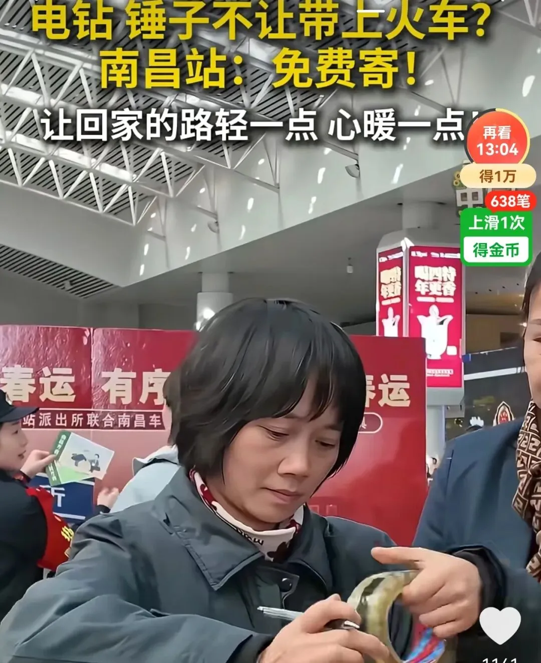 政府主动服务创新,让人感觉如沐春风,南昌火车站免费寄电钻锤子等