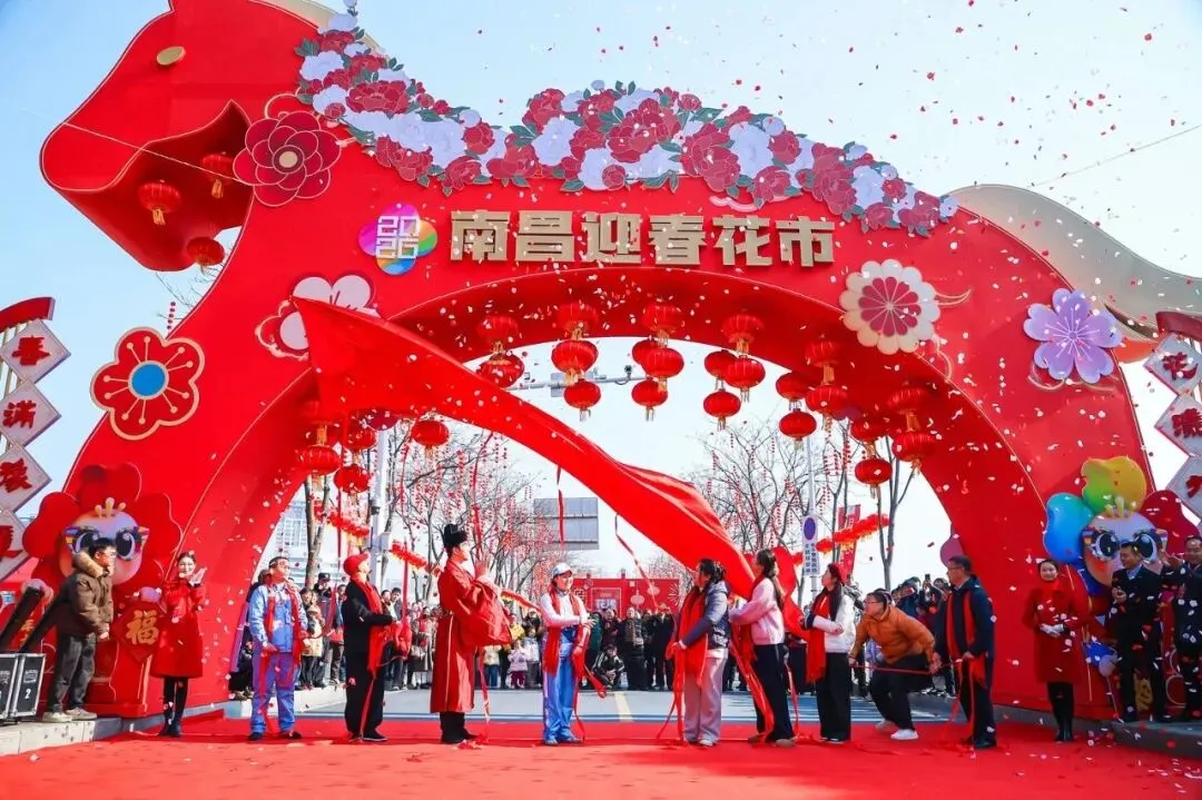 2026南昌迎春花市于2月8日在南昌市西湖区九洲公园开市,活动持续8天,至2月15日结束,每日开放时间为9:00—21:00。花市以“花漾九洲,春满豫章”为主题,设置“一市三区”空间布局,涵盖迎春花市区、年味烟火区、特色小吃区和花漾市集,88家优质商户齐聚,6000㎡花漾市集藏满惊喜,汇聚鲜切花、年宵花、绿植盆栽及各类年货,现场氛围喜庆热闹,市民可一站式购花、赏景、品美食。