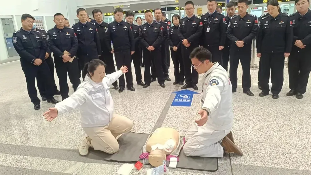 以训备战,夯实安全基底。应急处突部联合驻场单位开展应急救护专项培训,围绕心肺复苏、AED操作、常见急症处置等内容,提升一线人员应急救护能力。消防大队对机场地下消火栓开展全覆盖专项检查,逐一对水压指标、栓体密封等关键参数进行检测维护,确保春运期间应急救援供水设施时刻处于可靠状态。针对重点场所消防控制室值守人员,组织开展火灾自动报警、气体灭火、防排烟等系统实操教学。同时开展围界入侵及机坪入侵应急处置演练、工作现场发生强闯袭击事件应急处置演练等各项演练,强化跨岗位协同效能,切实将安全防线前移至每一个值守岗位。