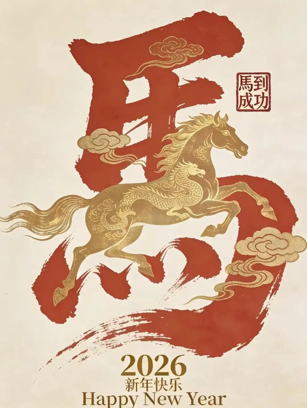 金马贺岁,瑞气盈门。愿新的一年里,大家身体康健拥有龙马精神,事业腾飞马到成功,家庭和美鞍马齐备,财源滚滚策马扬鞭不可挡。 让我们携手共进,在新的一年里乘东风、跨骏马,再创佳绩,共绘美好蓝图!