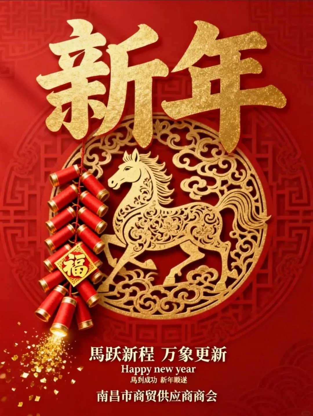 岁序更替,华章日新。值此丙午马年新春佳节来临之际,南昌市商贸供应商商会谨向长期以来关心支持商会发展的各级领导、各界友人,向坚守在商品流通一线的全体会员企业及从业者,致以最诚挚的节日问候!