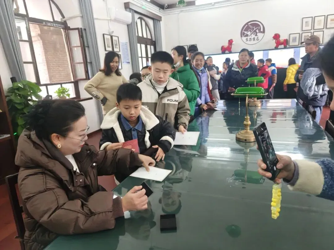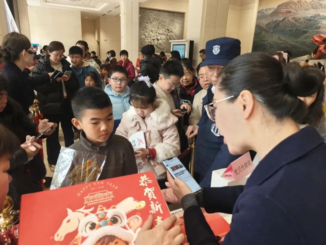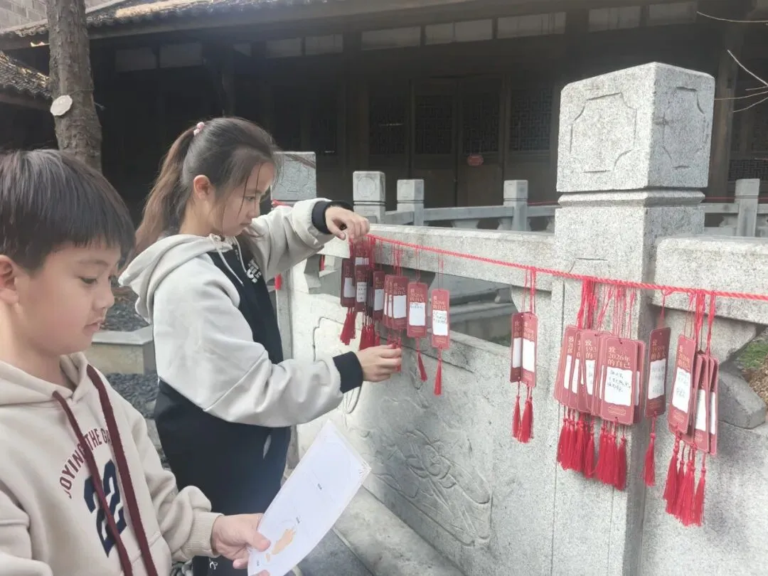 行至千年银杏树广场,春风轻拂,枝丫含青。大家提笔落墨,在「致1938年的春天」与「致2026年的自己」祈愿卡上,写下期许、挂在树前,以今人之愿,敬先辈之志。加一枚(祈愿章),三章集齐,既是打卡的圆满,更是春之希望、心之归处。一处处打卡墙前,观众与旧址同框、与古树合影,红色新春氛围浓厚。