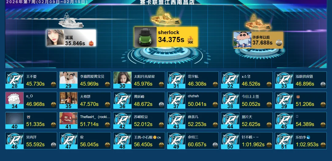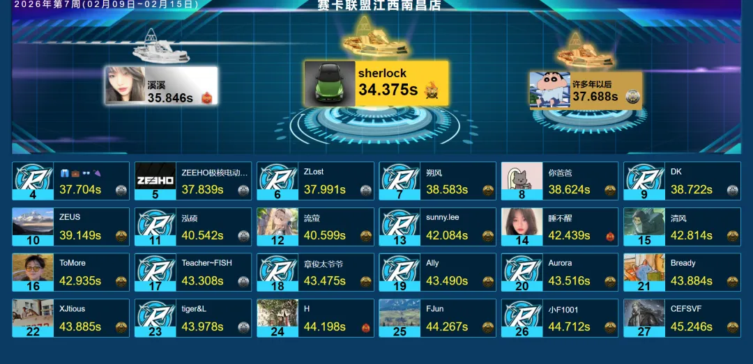 在赛卡联盟的激烈竞争中,每一天都有新的速度传奇诞生!欢迎来到上周最快圈速榜单,这里汇集了所有顶尖车手的精湛技艺和无尽速度激情。
