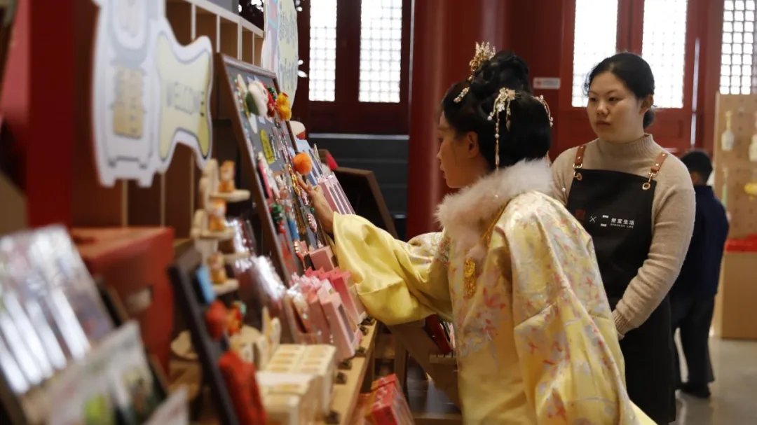 新年假期,南昌滕王阁景区游人如织。记者在走访中发现,景区内新开了一家独具匠心的文创店——“赣物志·荣宝生活”。店内上新了一批具有江西特色的文创产品,“圈粉”了不少市民游客前来打卡购买。