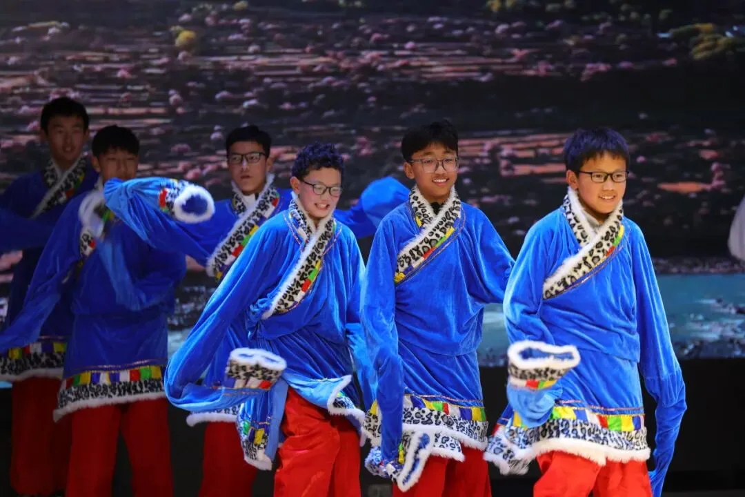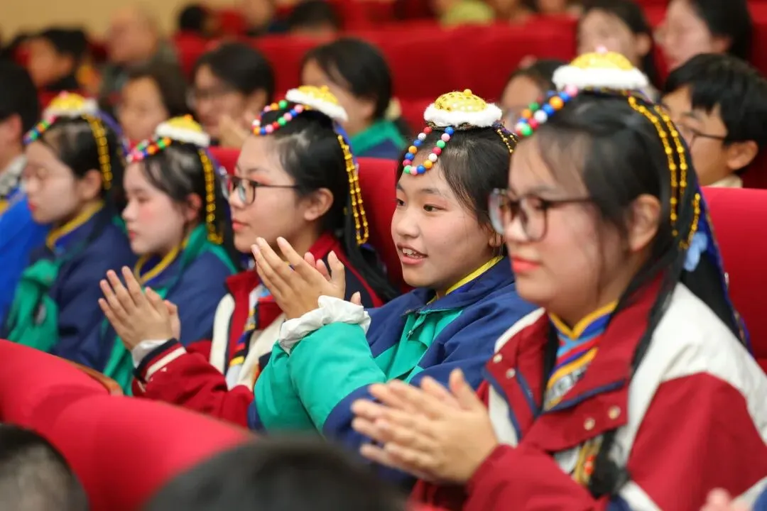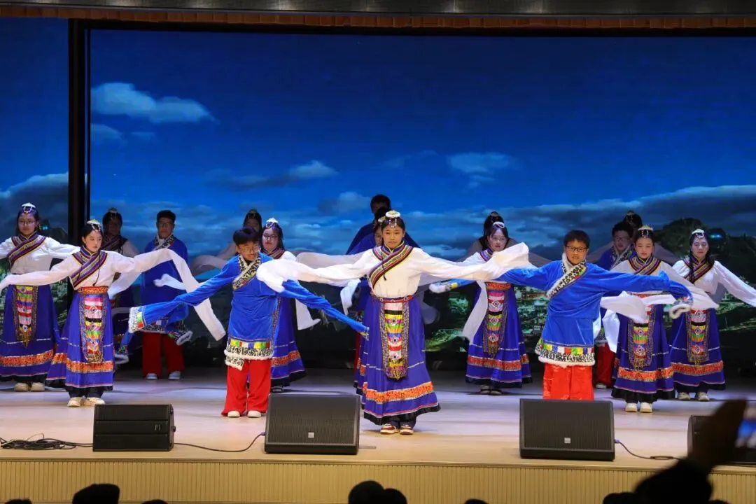庆典的文艺表演环节,全国民族团结进步模范刘和平带领的爱心妈妈团队为大家献上开场舞《吉祥年》,送上暖心的新春祝福。西藏班“雪莲·杜鹃合唱团”带来合唱《光亮》,用清澈歌声传递希望与力量;舞蹈社团的《心动高原》以奔放舞步展现雪域风情;经开校区高中部演绎古典舞《清庭云月》,尽显江南婉约之美。最后,汉藏团结班学生代表共同唱响《一个妈妈的女儿》,深情表达中华民族一家亲的永恒主题。