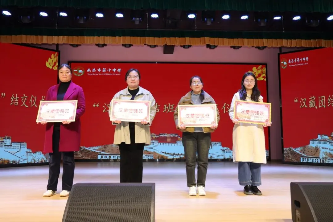 为深化各族学生交往交流交融,学校现场开展“汉藏团结班”结对授牌与互赠礼物活动,由校党委书记张勇治为结对班级班主任颁授班牌,以结对的形式筑牢民族团结进步纽带。