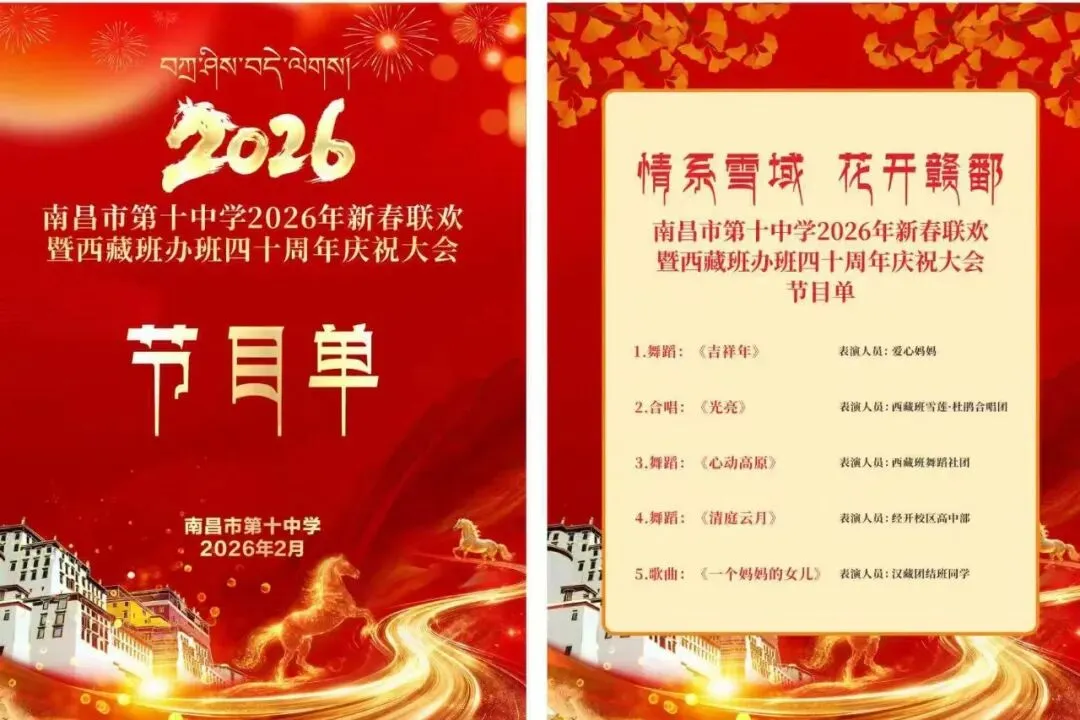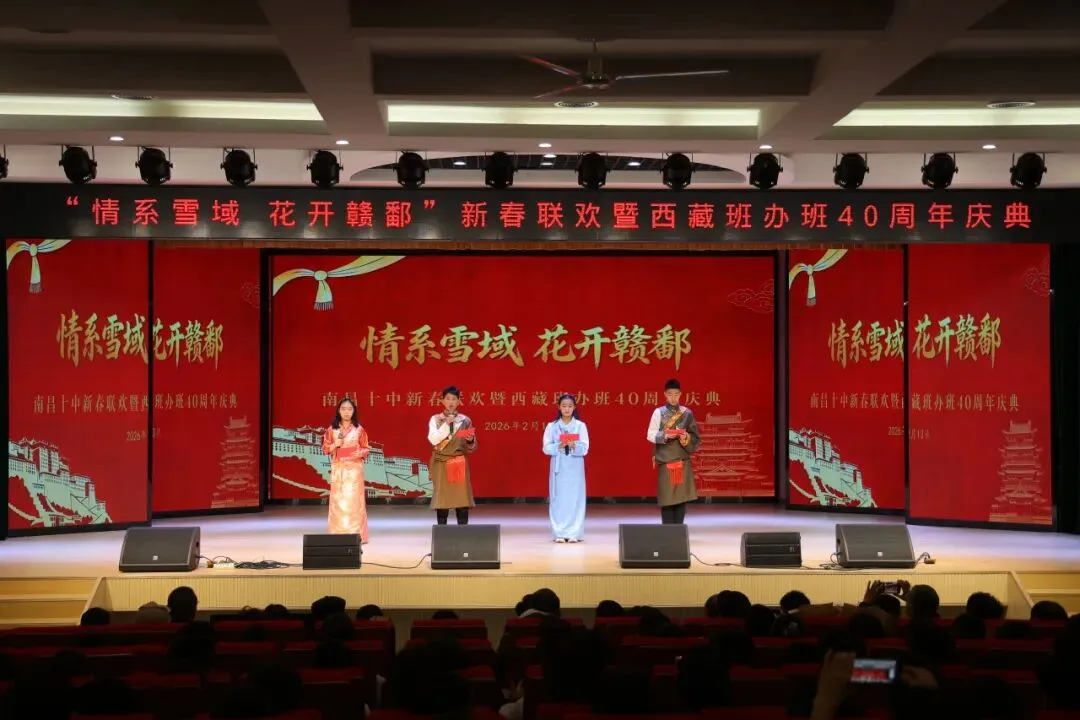 2月13日上午,恰逢新春佳节与藏历火马新年双节同庆,南昌市第十中学举办“情系雪域 花开赣鄱”新春联欢暨西藏班办班40周年庆典活动,以四十载民族教育实践,厚植赣藏深情,铸牢中华民族共同体意识。