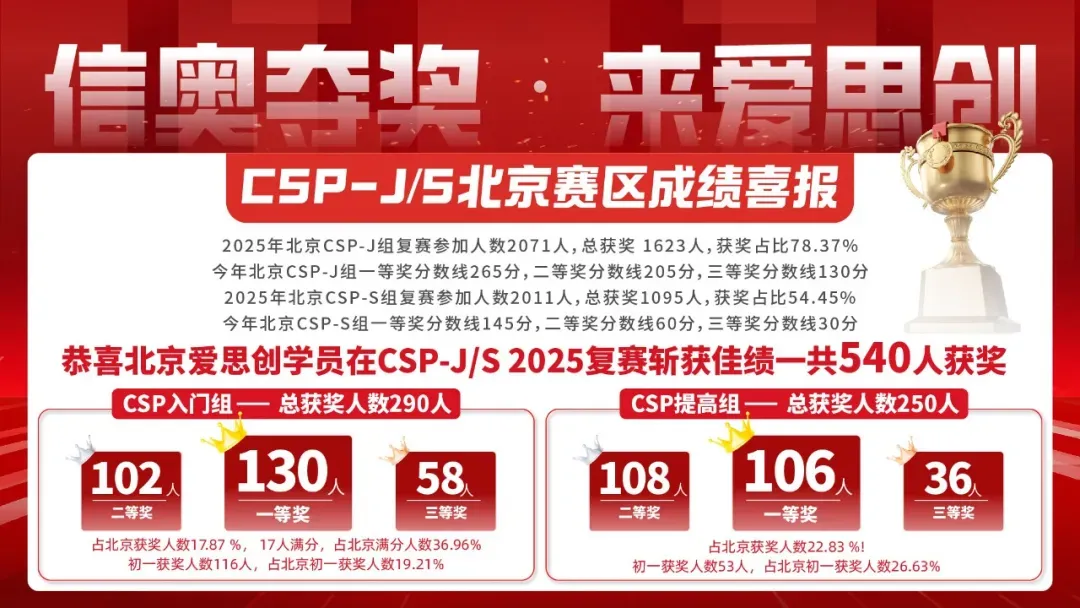 爱思创在线,将爱思创在北京赛区沉淀了十几年的优质信奥教育资源通过在线直播课形式带到全国各省市信奥选手面前,面向3年级以上信奥在线实验班、5年级以上信奥在线集训队,从信奥C++启蒙课到信奥夺奖课程体系完整,助力全国学生CSP-J/S、NOIP信奥夺奖、信奥升学进名校!