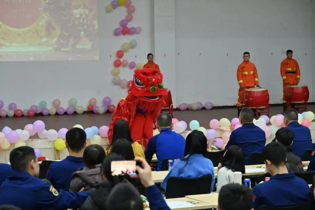 一场以《骏马疾驰启新程,凝心助力建新功》为主题的晚会在欢天喜地的舞狮表演中拉开帷幕,指战员们身穿狮服,腾跃翻转,将队伍的豪迈与新春的喜庆完美融合,瞬间点燃全场氛围。舞蹈表演《DJ舞曲串烧》舞姿刚劲有力,气势如虹,尽显消防指战员忠诚担当、勇毅前行的时代风采;三句半小品《守护者说》在欢声笑语中充分体现出消防铁军勇担当、赴汤蹈火守安康的作风精神;晚会在《相亲相爱》歌曲大合唱中落下帷幕,全体指战员热血沸腾、倍感振奋。
