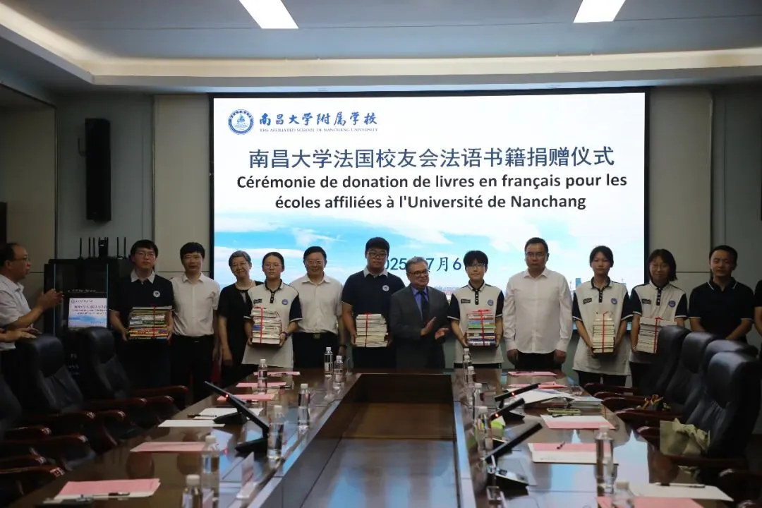 2025年的盛夏,我们共同见证了历史性的一刻。7月6日,由南昌大学法国校友会发起,携手法国驻武汉总领事馆共同推动的 “法语书籍捐赠仪式暨南昌大学中法国际人才基地揭牌活动”在南昌大学附属学校隆重举行。