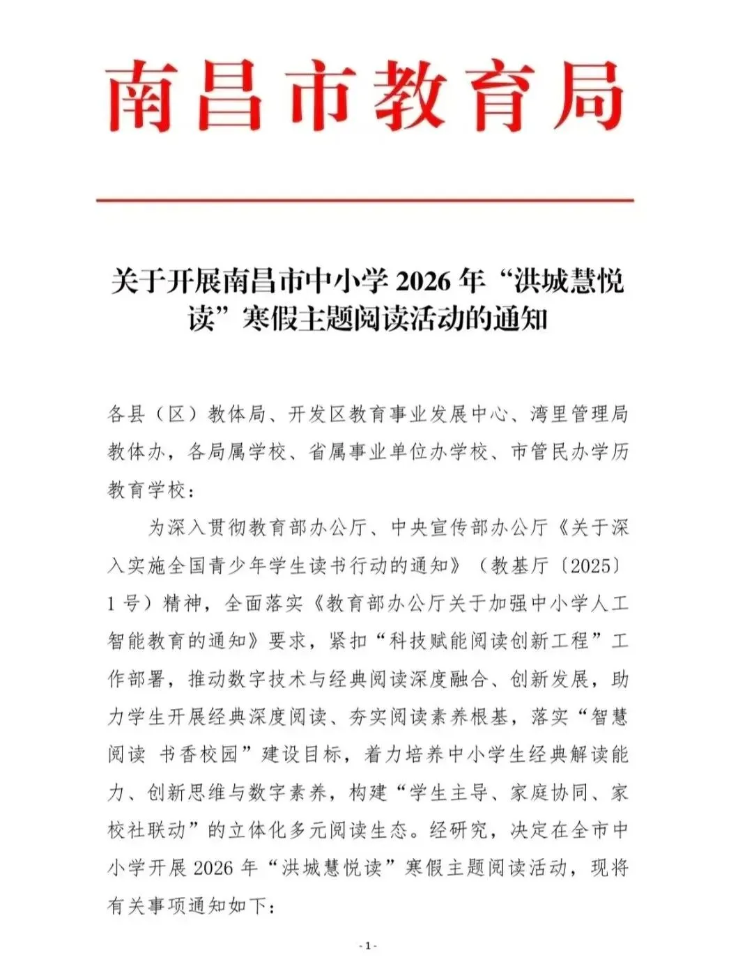 >【教师活动】南昌市中小学2026年“洪城慧悦读”寒假主题阅读活动