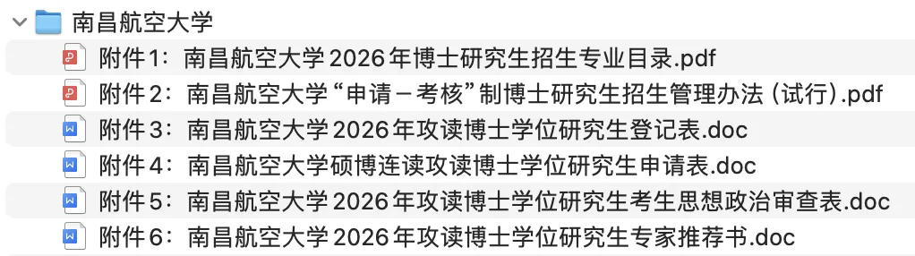 (5)两名具有正高职称专家签名的《南昌航空大学2026年报考博士学位研究生专家推荐书》各一份(详见附件6);