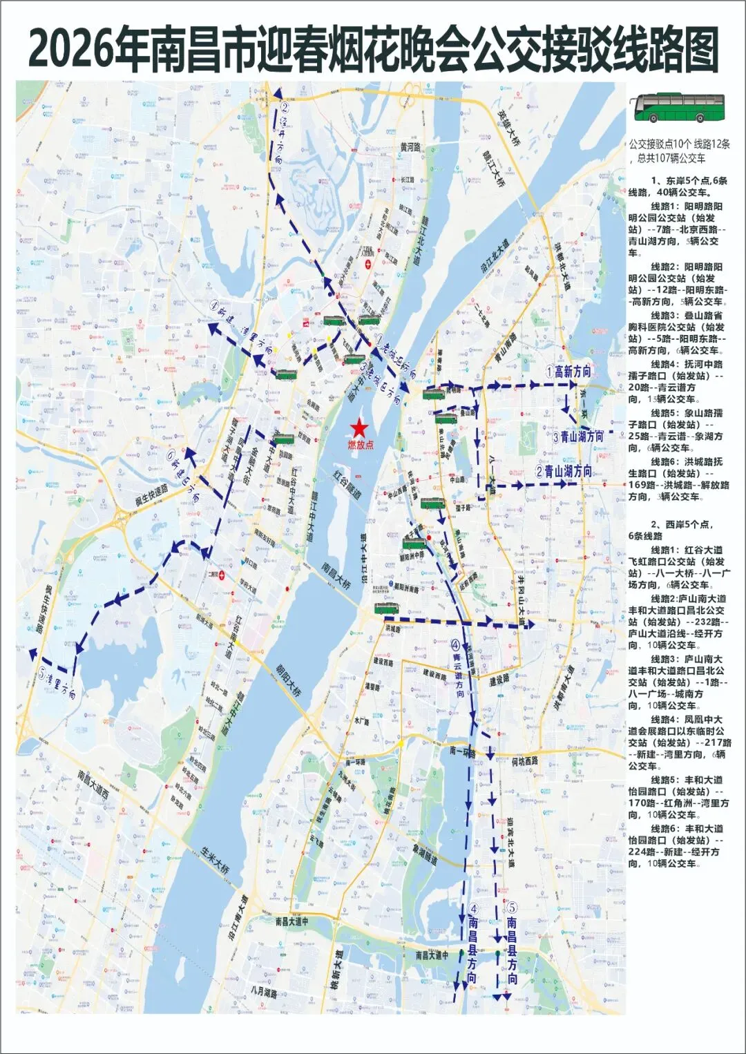 如王府井购物中心周边市民游客,可乘坐地铁3号线十字街站→八一馆(换乘1号线)→滕王阁站(19:00-22:00期间就近站点);