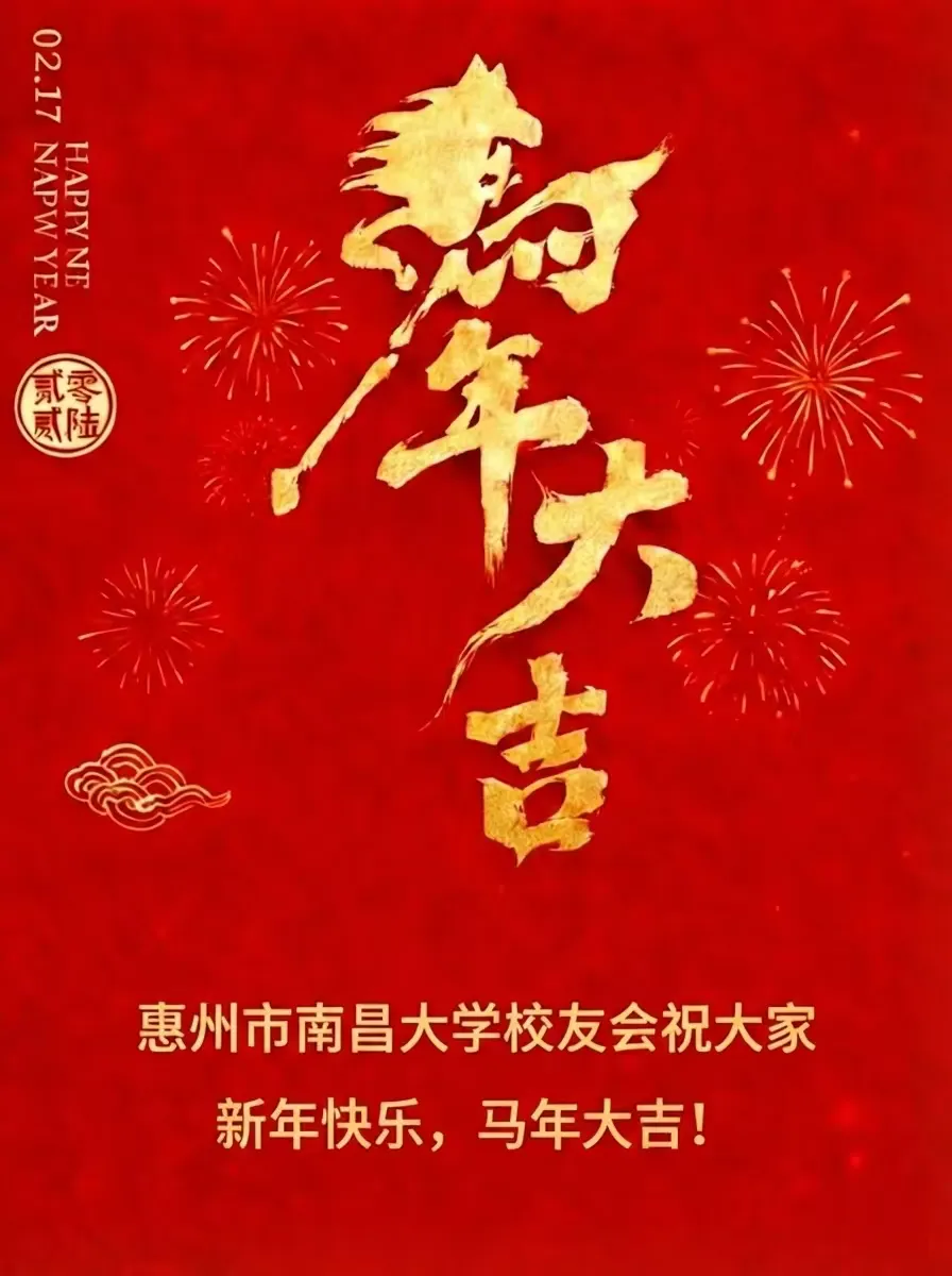 值此新春佳节,惠州市南昌大学校友会在此祝大家新年快乐,马年大吉!
