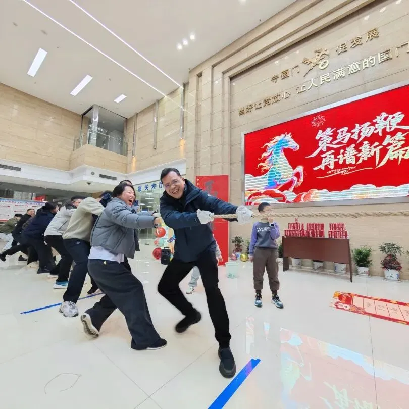 新年拔得头筹,齐心合力拉一把,新年头彩迎面来。