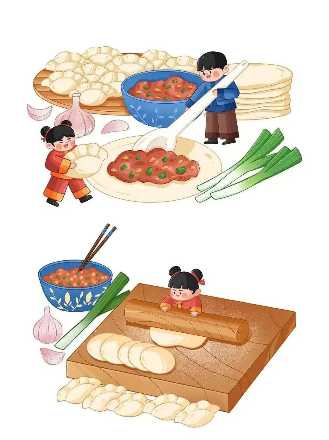 过年吃饺子,寓意耕穗浇子。做法是擀面皮放馅捏成月牙形。除夕夜阖家团圆吃饺子,是年终盛宴,象征团圆,比山珍海味更重要。
