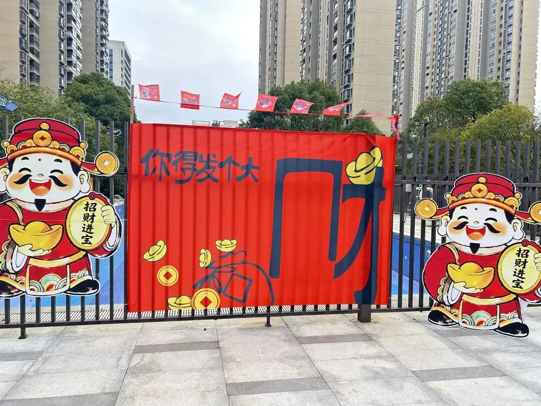 无联不成春,有联春更浓,禧园的新春年味,藏在精心布置的一抹抹中国红里,融在走心贴心的便民服务中。物业团队将红色元素与传统年俗深度融合,园区火红灯笼高高挂起,单元大堂、楼栋门口张贴喜庆春联与精致窗花,宣传栏满是红色新春祝福,一步一景皆是祥和喜庆,让整个园区沉浸在浓浓的马年新春氛围里。