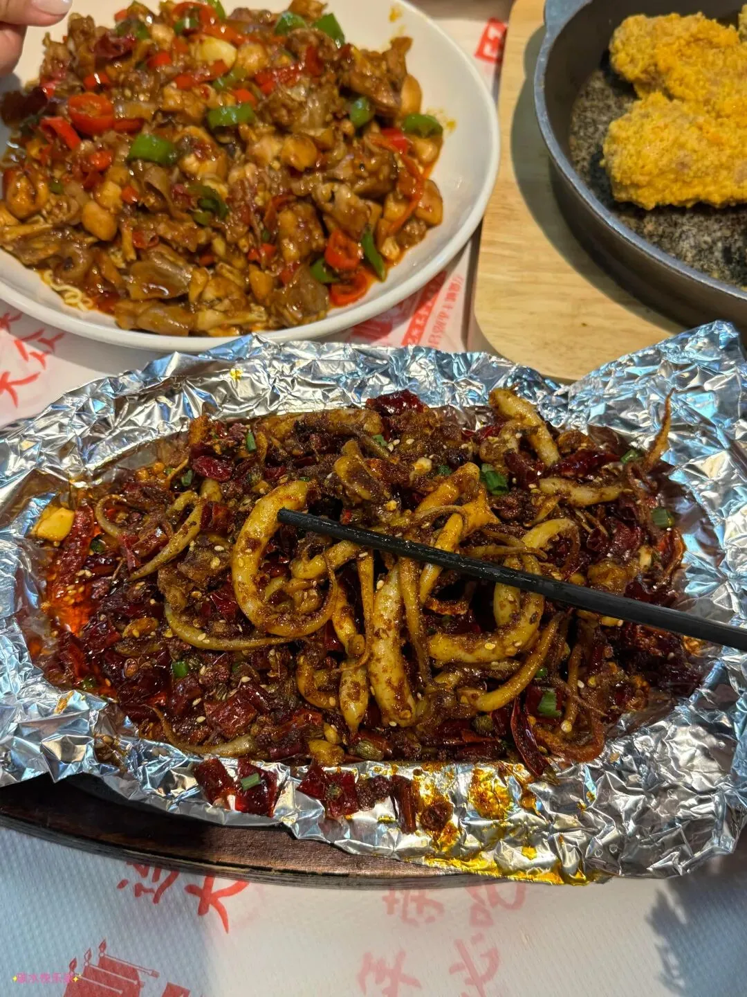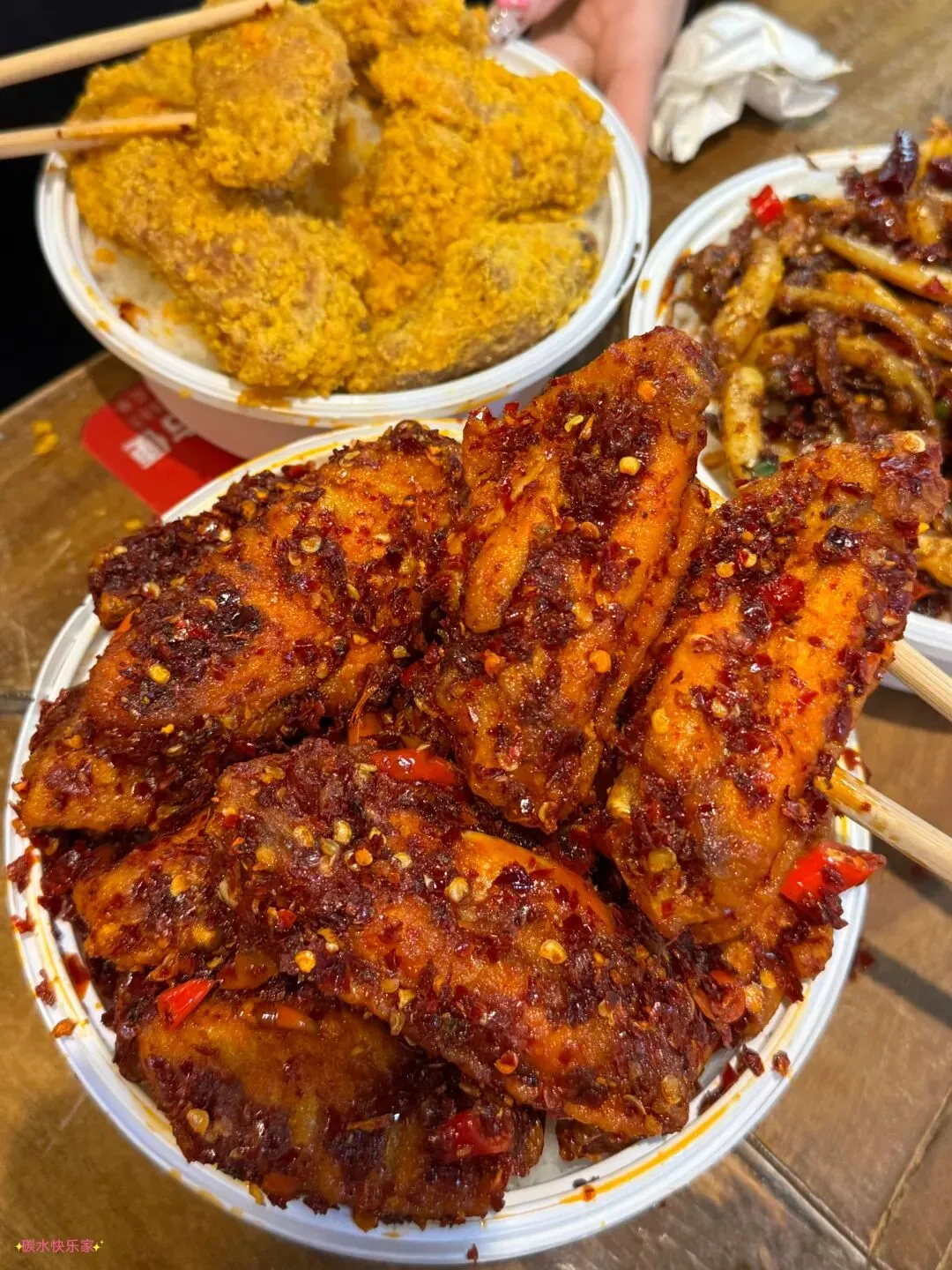 • 铁板爆辣鸡翅:鸡翅被炸得外皮金黄酥脆,裹满了浓郁的辣酱,放在滚烫的铁板上,“滋滋”作响。咬上一口,鸡翅鲜嫩多汁,辣味在口中瞬间爆发,那叫一个过瘾,喜欢吃辣的朋友一定不能错过!