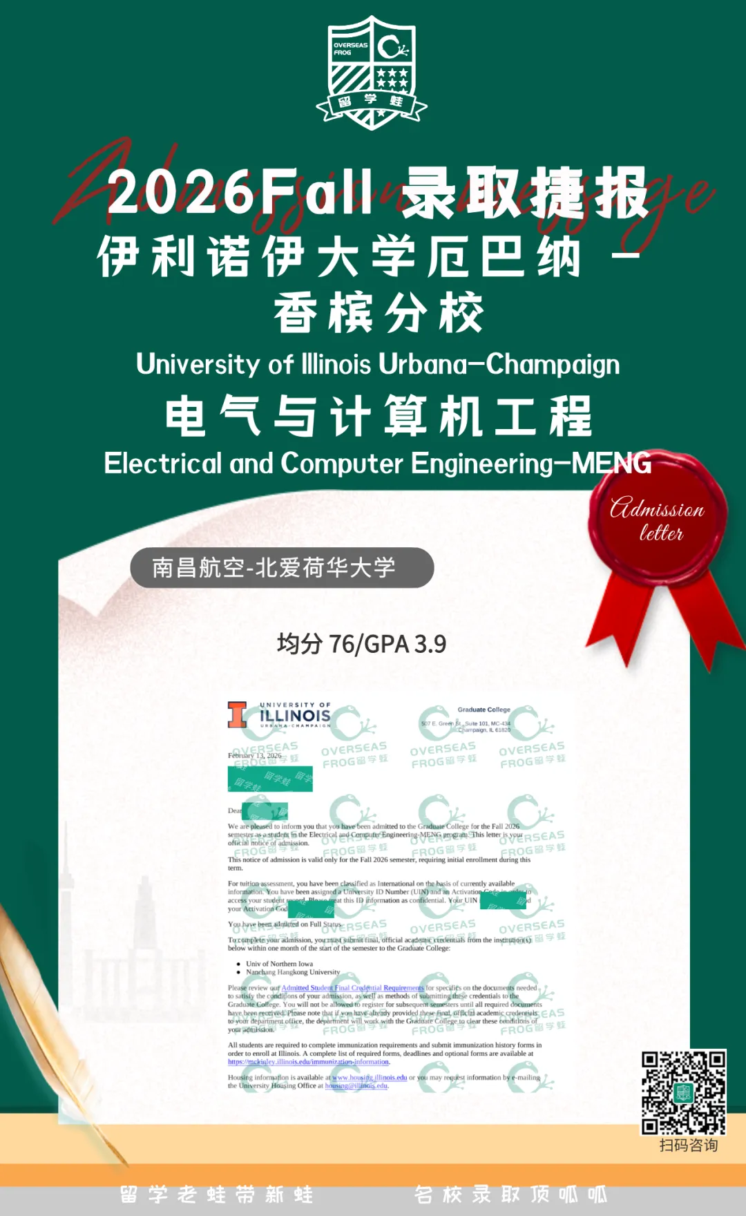 26Fall | 南昌航空2+2项目学子收获UIUC【电气与计算机工程】硕士offer!