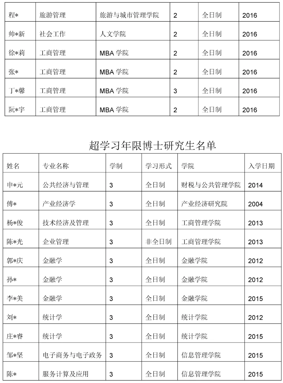 对于超过学习年限的研究生,学校已通过各培养单位在本学期通知学生办理退学,但仍有部分学生没有联系上或没有办理相关手续。因此,研究生院决定对上述学生采用公告方式送达退学决定。研究生本人若对处理决定有异议,可于公告期内,向各培养单位提出书面申诉,逾期未提出申诉,不再予以受理。