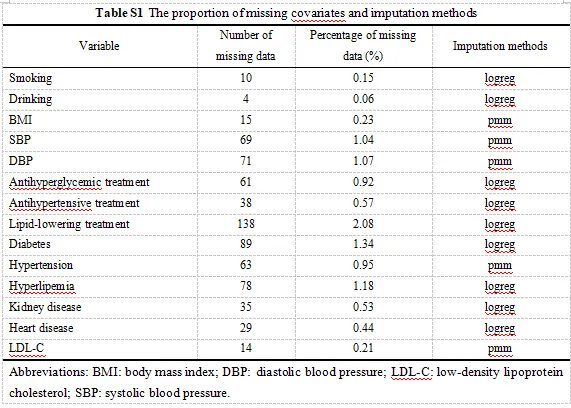 表4. AO和非传统脂质参数对糖尿病、心脏病和中风风险的联合影响的敏感性分析(N = 6,388)