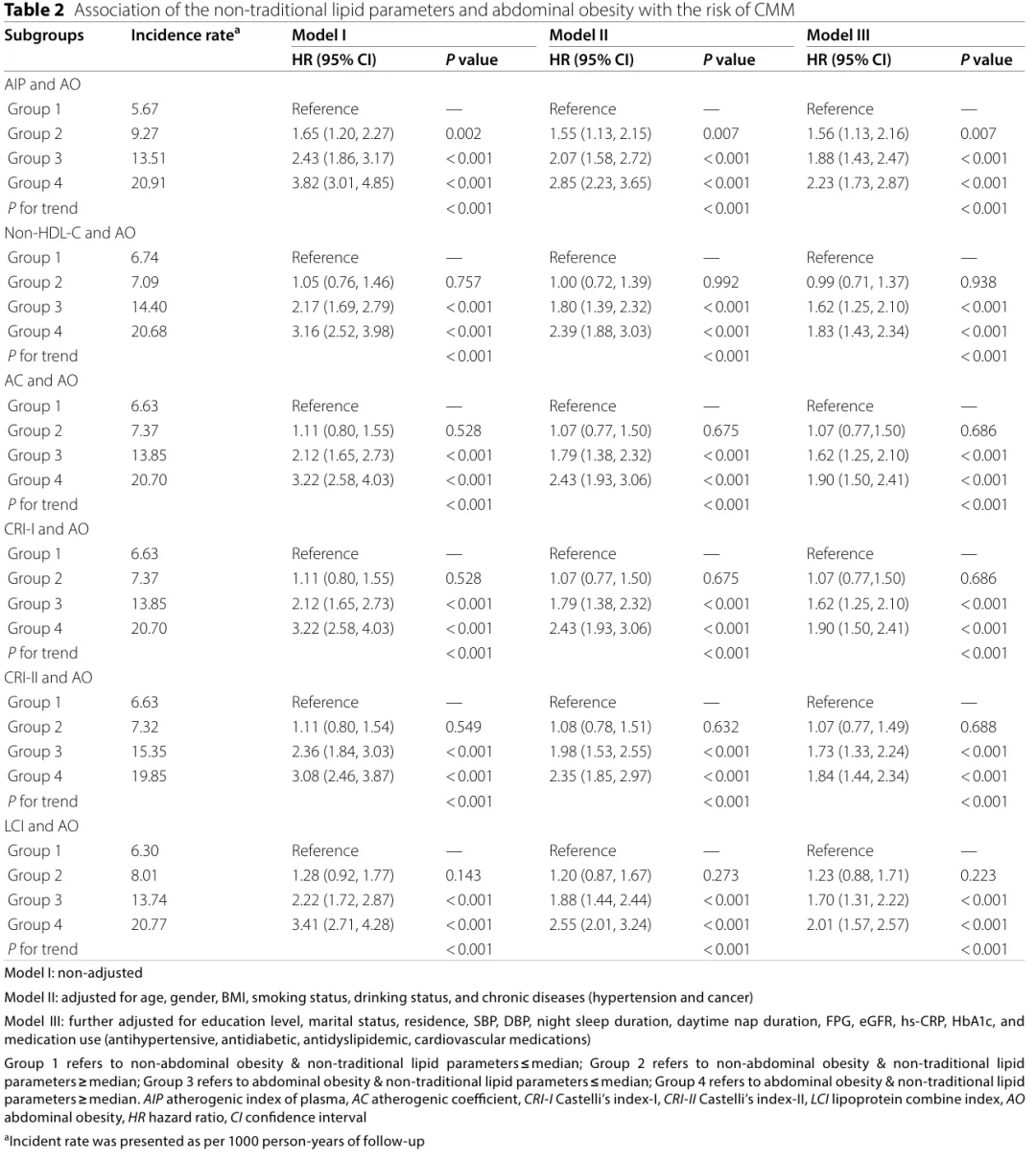 🌏首探腹型肥胖(AO)与非传统脂质参数的联合作用对心代谢多重发病(CMM)的影响,明确二者协同是关键可控危险因素。