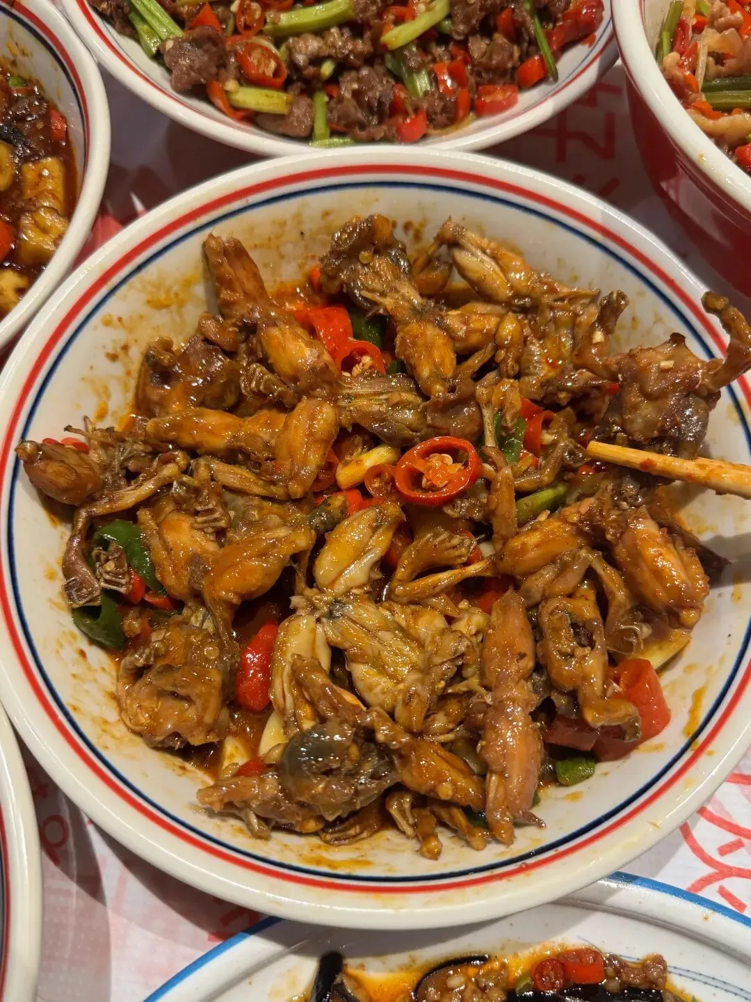好吃的没话说~不是那种为了噱头而辣的网红店,每个菜都有自己的特色,鱼籽鱼泡好好吃,大块的鱼籽脆弹的鱼泡,被汤汁包裹好下饭😭红烧青蛙在我心里没有对手的一道!!!香辣有味,怎么会这么会烧啊啊啊!黄豆烧鸡脚软烂脱骨,鸡脚糯糯的很香!!他家菜完全可以闭眼冲!😋
