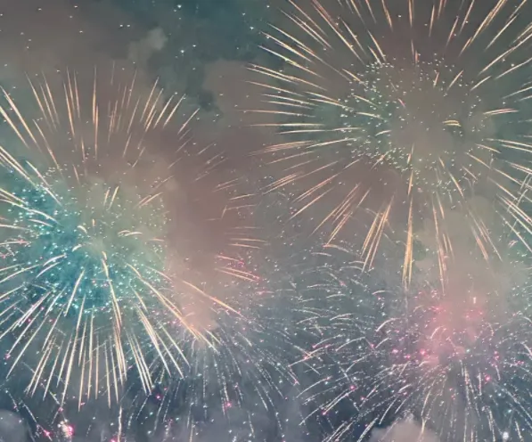 两岸一齐亮,楼体像翻书,水面全是碎银。