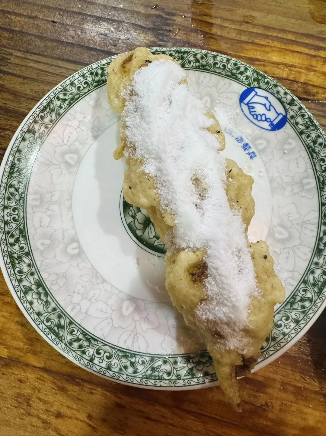 我进到店里,找了一个空位,点了一份油炸香蕉,当那份油炸香蕉端上来的时候,看起来非常普通,甚至有点难看,让我挺没食欲的。不过倒是和那个女孩形容的一样,香蕉上面撒了一层白霜。