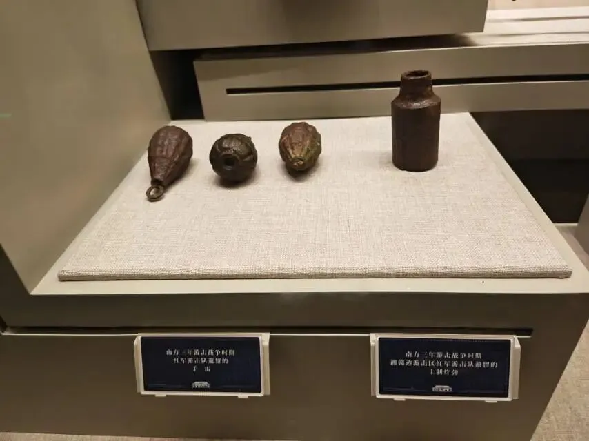 走进旧址陈列馆,时光的厚重触手可及。展柜中,锈迹斑斑的手雷与土制炸弹,沉默诉说着南方三年游击战争的艰苦卓绝;大刀与燧发枪陈列如阵,折射出当年“大刀向鬼子头上砍去”的凛然之气;竹篮、布包、铁锅……这些朴素的生活旧物,承载着战士们在烽火中辗转的行迹与温度。