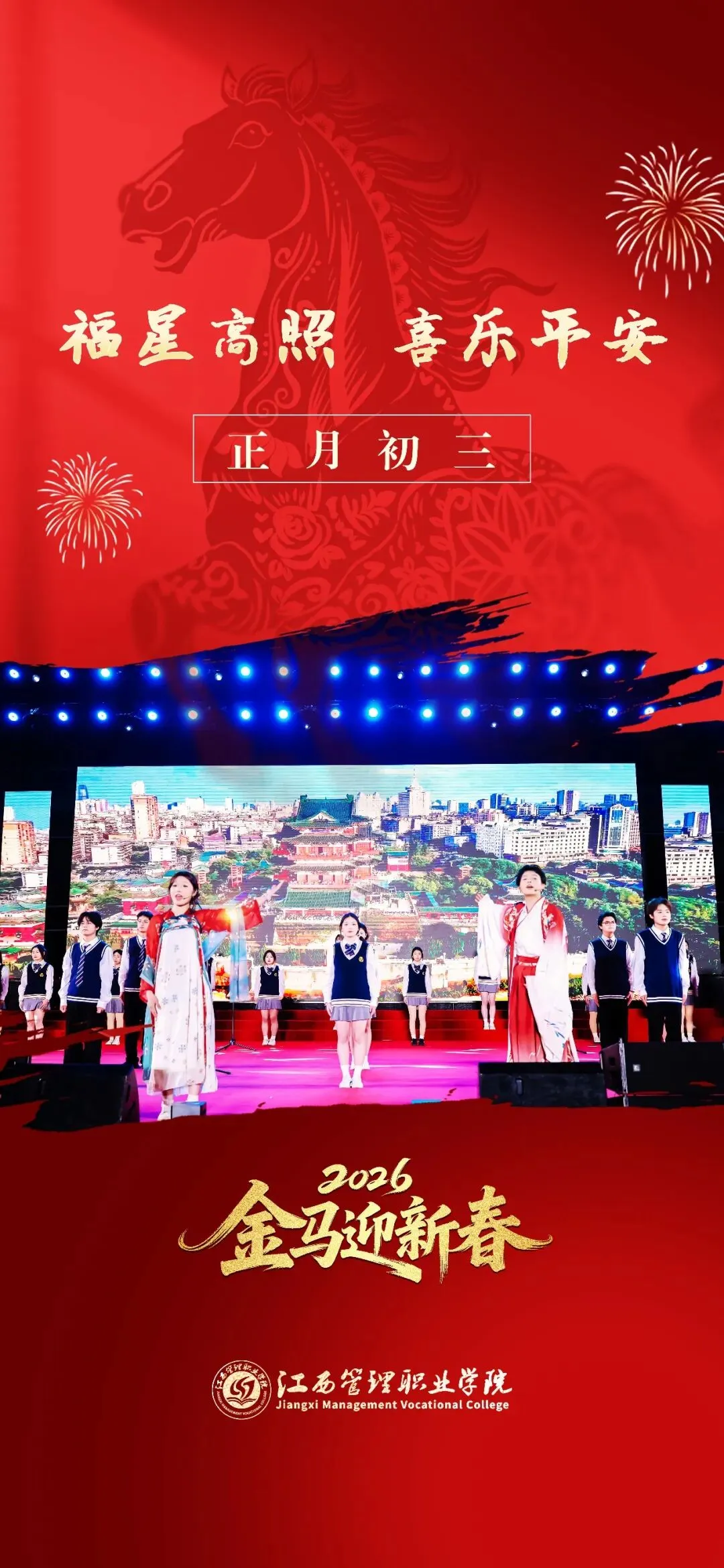 今天是农历正月初三,在这春意渐浓的日子里,江西管理职业学院向全体师生、校友及关心学校发展的朋友们拜年!