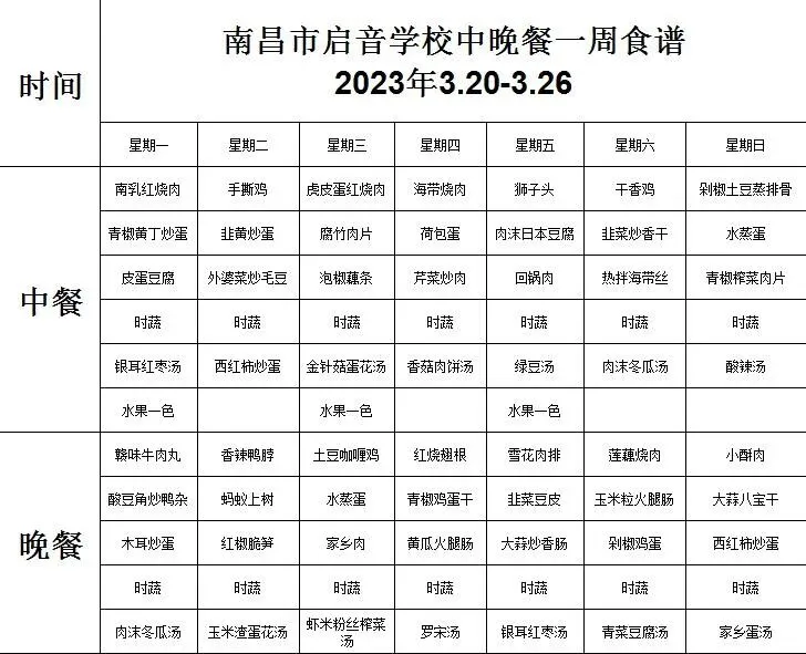 健康的饮食是孩子们成长的根基,而日常的营养膳食对孩子身心成长尤为重要,我们用新鲜食材精心烹饪让孩子们吃得营养,吃得健康、吃得安全!快来围观启音学校这周食谱吃到的美食有哪些吧!
