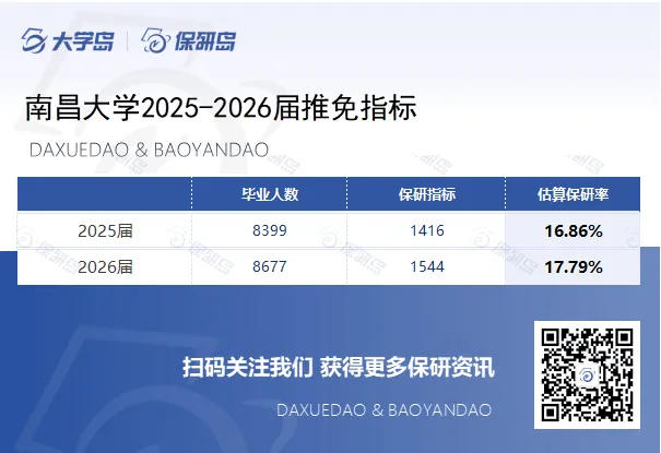从以上数据可以看出,2026届南昌大学推免指标上涨128人,2026届南昌大学保研率从16.86%上涨至17.79%。