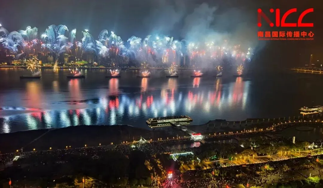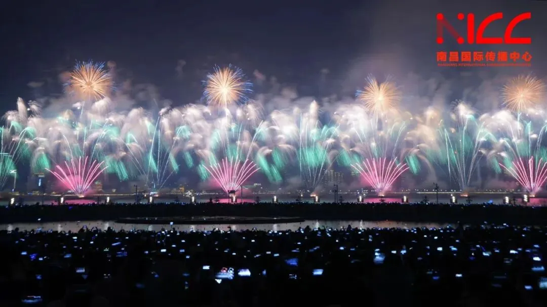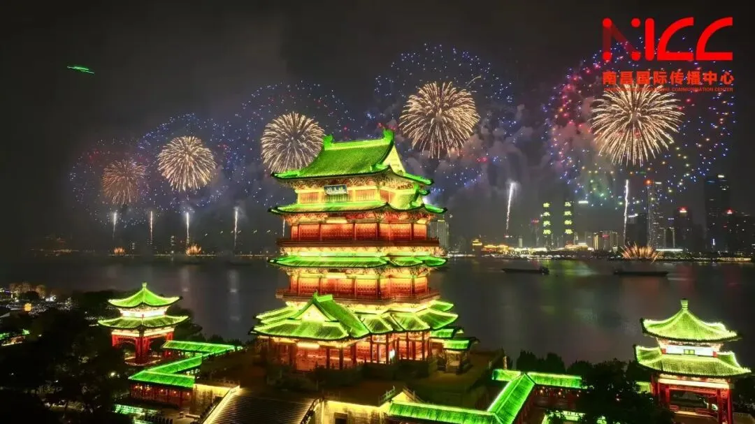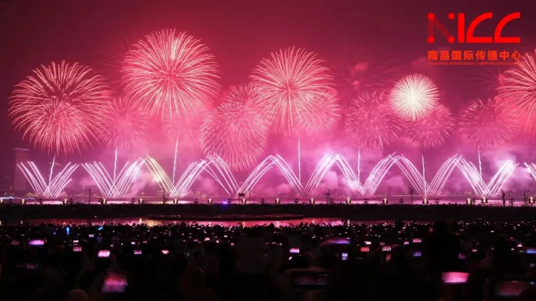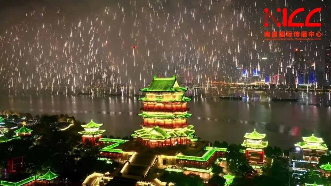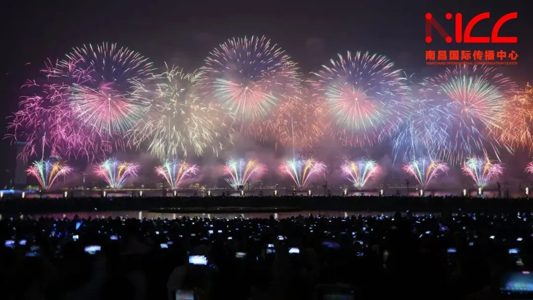 流光溢彩的焰火点亮赣江两岸,古建筑与现代高楼交相辉映,营造出浪漫、热烈、喜庆的浓厚年味,也让众多外国友人沉浸式感受中国春节的独特魅力。