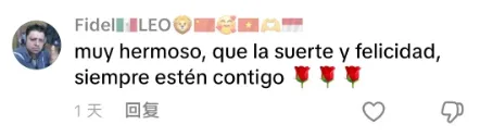 西班牙网友“FidellILEO”用西班牙语送上祝福:“muy hermoso, que la suerte y felicidad, siempre esten contigo”(太美了,愿好运与幸福永远伴你左右。)。