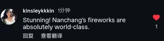 “stunning” “unbelievable” “beautiful China” 成为海外网友评价的关键词,大家自发点赞传播,让南昌烟花的国际人气持续暴涨。