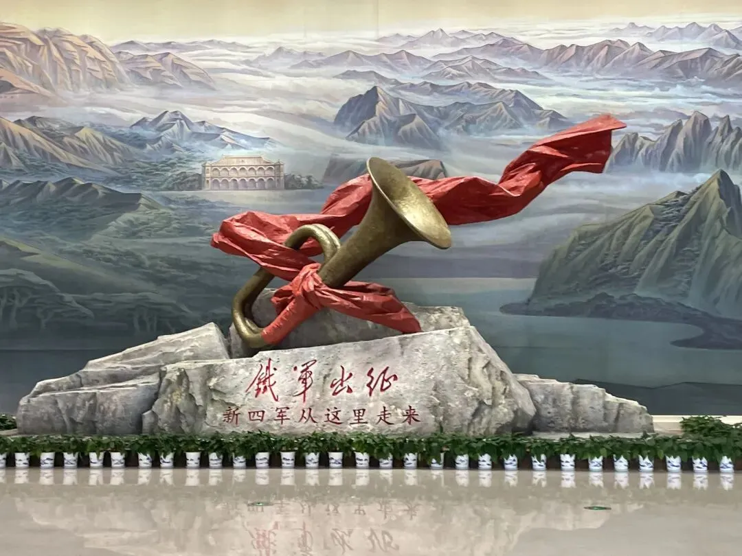 一进门,那尊“铁军出征”的铜号雕塑就撞进眼里,红绸段飘得像是一团火,石头上刻着“新四军从这里走来”,字里行间都带着股不服输的劲。我站在那呆了半天,脑子里突然就冒出个念头:当年那些人,就是吹着这样的号,从南昌这座城走出去,去打鬼子的吧?