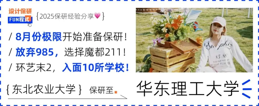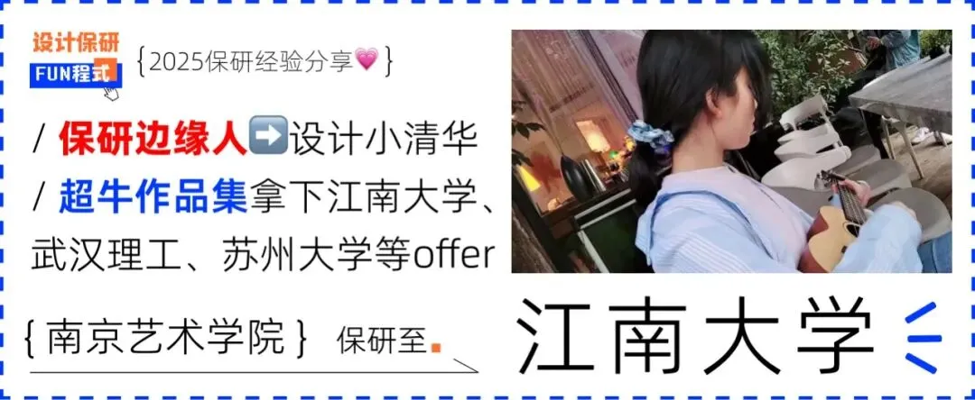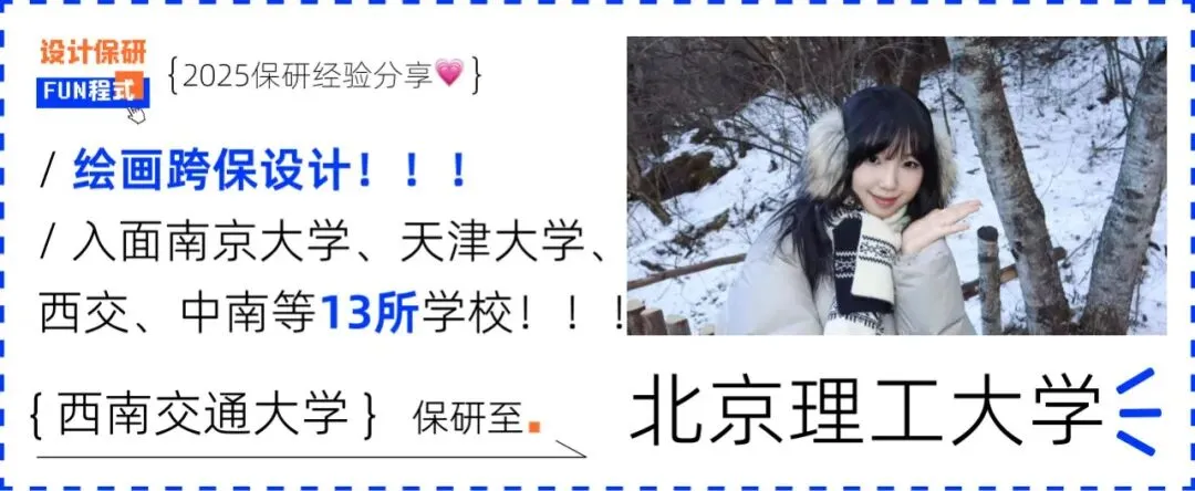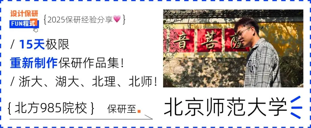 二是尽早启动作品集(这里必须再为小方学长打call!)。我见过太多同学大三下学期才开始做作品集,结果赶不上夏令营申请,只能错失很多优质院校的机会;就算赶得上,也因为时间太紧,作品细节粗糙、逻辑不连贯,很难打动老师。而提前准备的好处在于:不仅能稳稳赶上所有申请节点,还能有足够时间反复打磨——比如优化设计逻辑、调整视觉呈现、补充过程性材料,让作品集真正成为“加分项”,而不是“拖分项”。