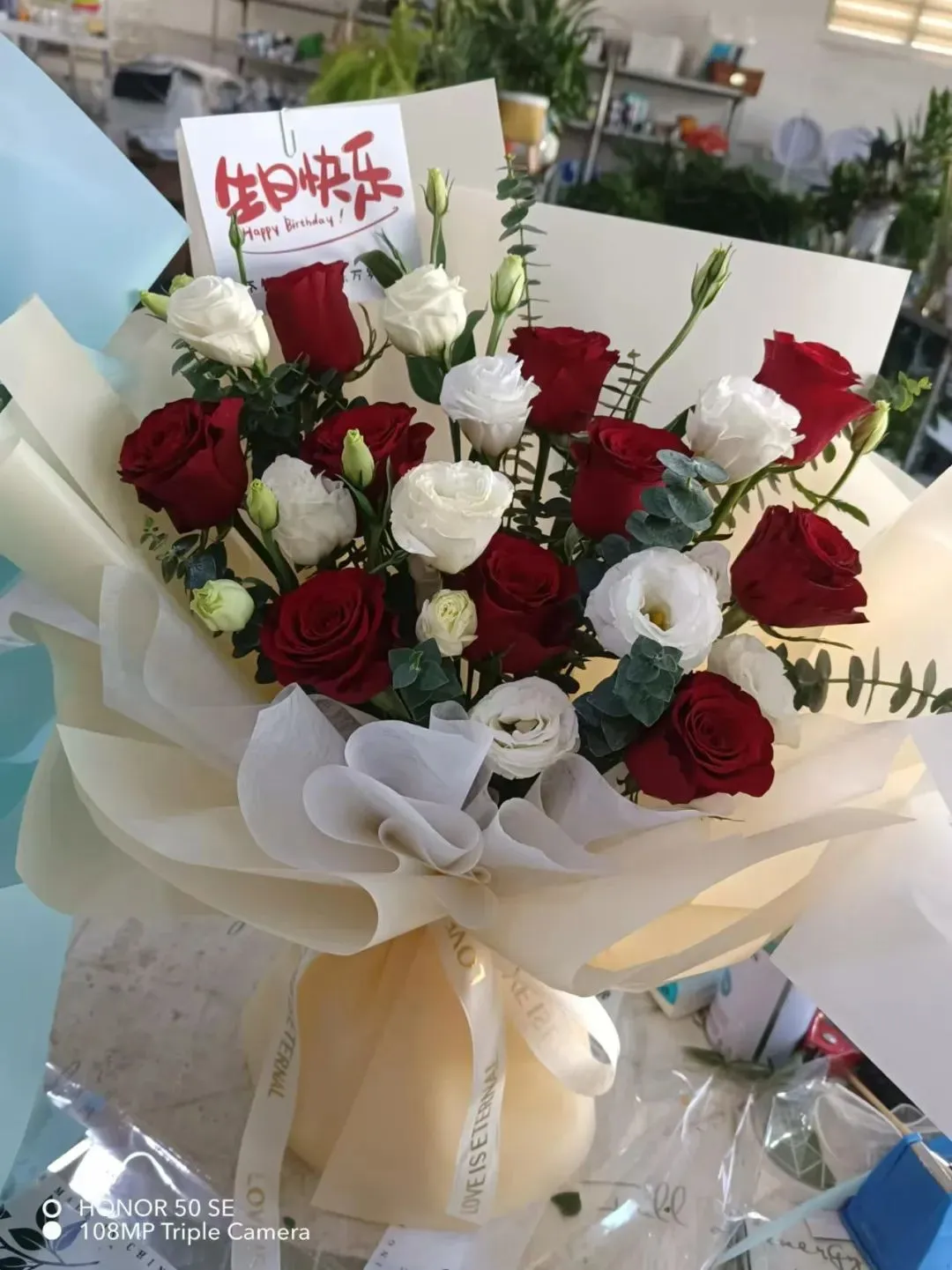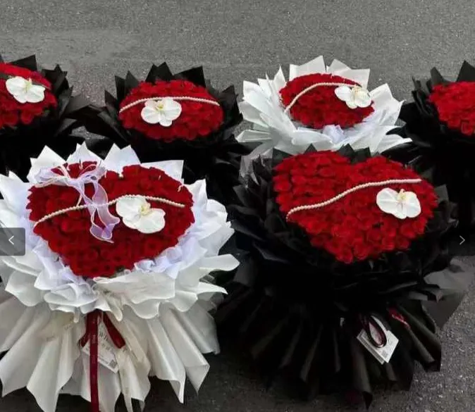 鹊桥相会:以传统鹊桥为灵感,设计独特的花束结构,用红玫瑰与绿叶编织成一座爱的桥梁,象征着有情人终成眷属的美好愿景。搭配精致的手写卡片,让爱意随着花香传递。