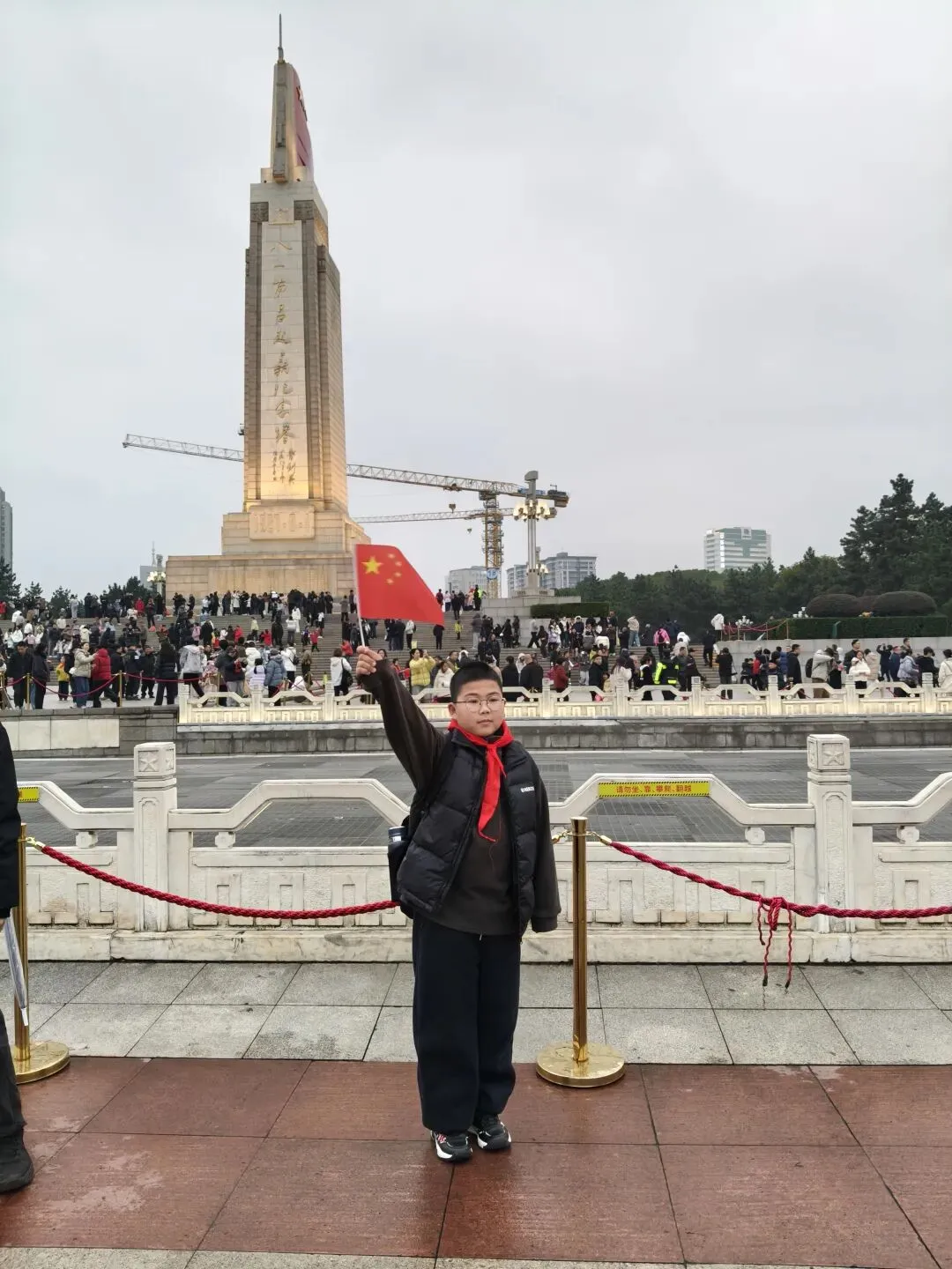 2月19日凌晨四点,我们准时从港南浜小区出发,因为是电车,途中共充了四次电,下午一点多时到达第一站南昌。住宿宾馆选在附近地铁卫东站,非常方便。我们是先去了南昌新四军军部旧址陈列馆参观后再到宾馆的。休息了一小时后,很快整装打起精神乘地铁去八一广场——南昌起义纪念塔。来到这里发现,广场人流量特别大,但也不是那种十分拥堵的场景,感觉真好,甚至都有些激动人心。生在中国,爱在中国,中国的子孙后代,崇拜和不忘的永远是这些革命先烈。都知道,中国历史上的这场起义,是中国共产党独立领导武装斗争和创建人民军队的开端,打响了武装反抗国民党反动派的第一枪。来之前,我就特意叮嘱小孙以恒,让他带上一枚红领巾,到了拍照。既是留念,也是让他们这一代人记住这光辉岁月。不忘初心牢记使命。之后,我们在一家小饭店解决了晚饭。